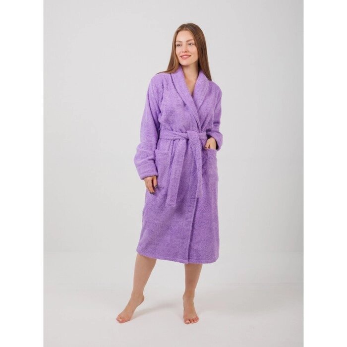 Халат женский махровый, с шалькой, размер 52-54, цвет сиреневый