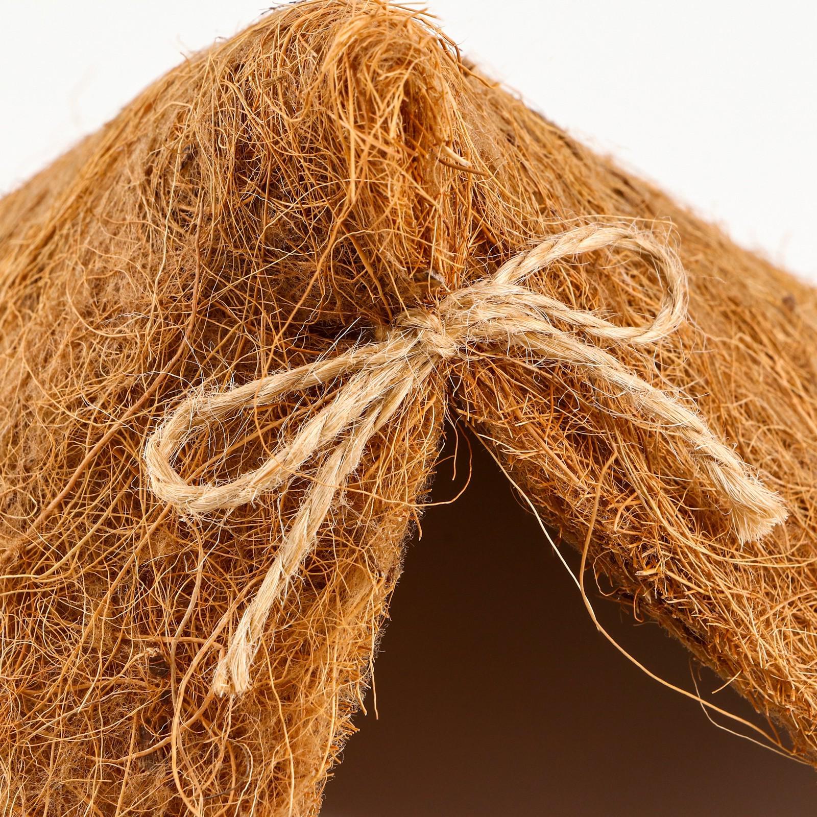 Домик для террариумов из натурального кокосового волокна в террариум, улиткарий. Подходит для укрытия улиток ахатин,, архахатин. В домике уютно устроятся мелкие грызуны : мыши, песчанки, сони, дегу, хомячки. крысы, бурундуки, тушканчики. Укромное местечко найдут для себя и рептилии, ящерицы, змеи. Также черепахи и пауки. Состав: кокосовое волокно.