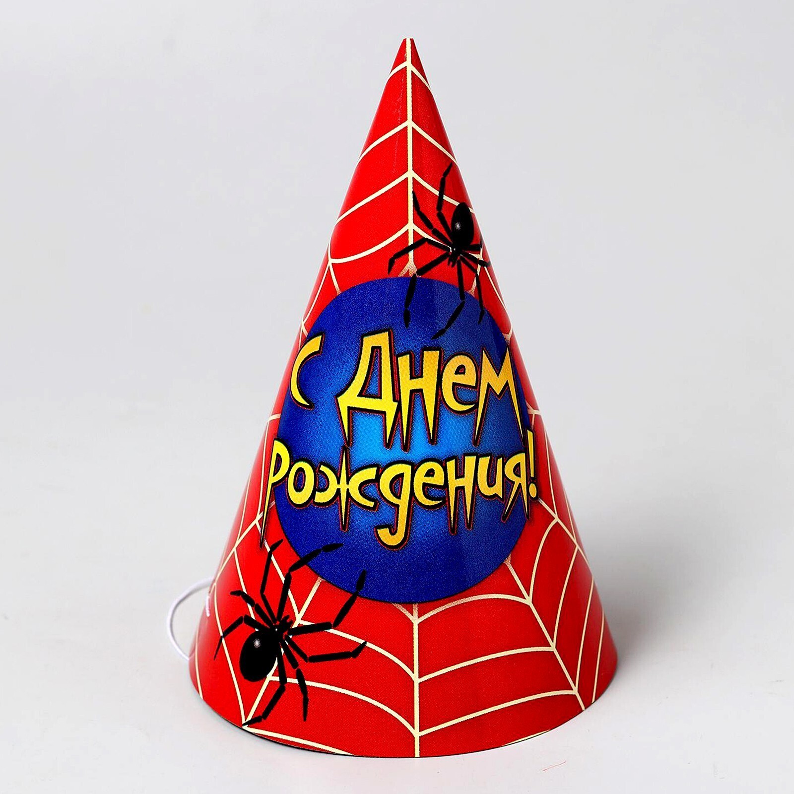 Колпак бумажный "С днём рождения! Паутина", набор 6 штук
