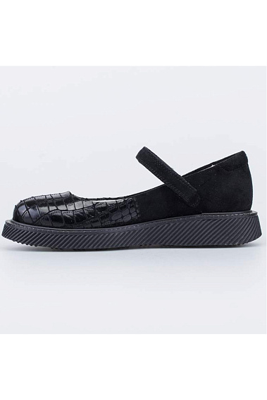 Туфли для девочки классического черного цветас подкладкой из натуральной кожи. Верх выполнен из искусственной кожи, а подкладка и стелька из натуральной - износостойкого, гипоаллергенного и дышащего материала. Мягкий манжет снижает вероятность натирания. Липучки-велькро позволяют быстро обуваться и разуваться. Подошва выполнена из ТПУ (термополиуретана) - амортизирующая, гибкая и легкая. Благодаря лаконичному дизайну, туфельки отлично подходят для повседневной носки в школу. Модель анатомически правильная: имеет небольшой каблучок/танкетку, в меру жёсткий задник и круглый носок. Такая научно-обоснованная конструкция положительно влияет на правильное развитие стоп и всего опорно-двигательного аппарата.