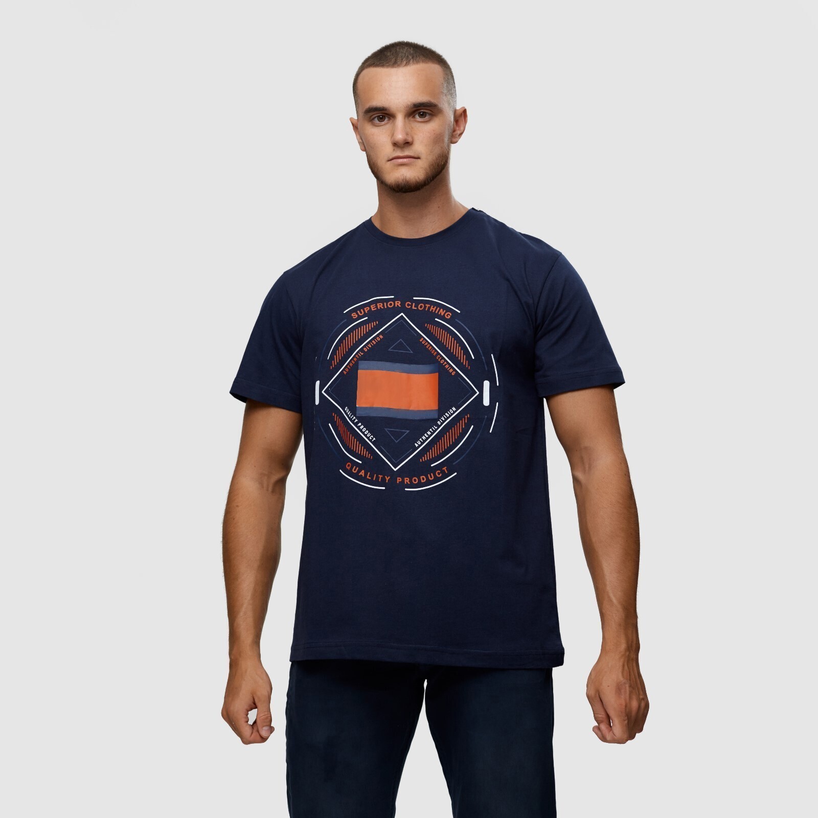 Футболка мужская, цвет тёмно-синий/принт МИКС, размер 44 (S)