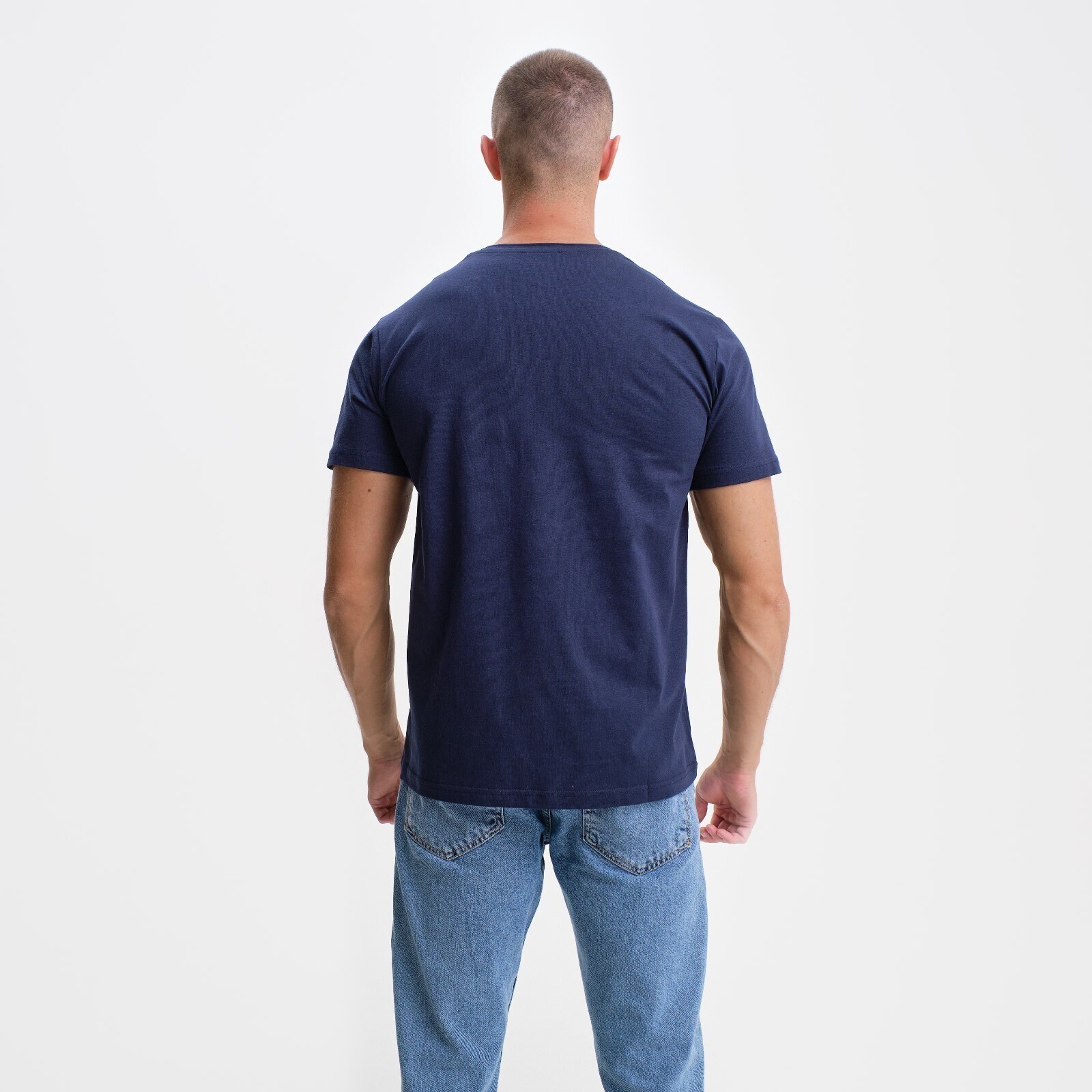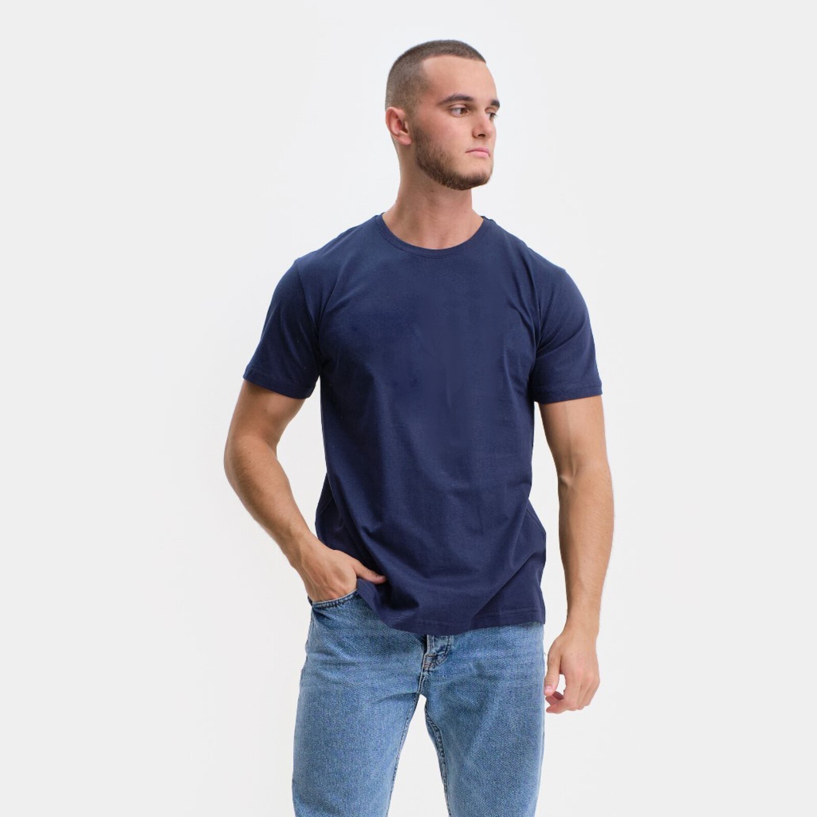 Футболка мужская, цвет тёмно-синий/принт МИКС, размер S