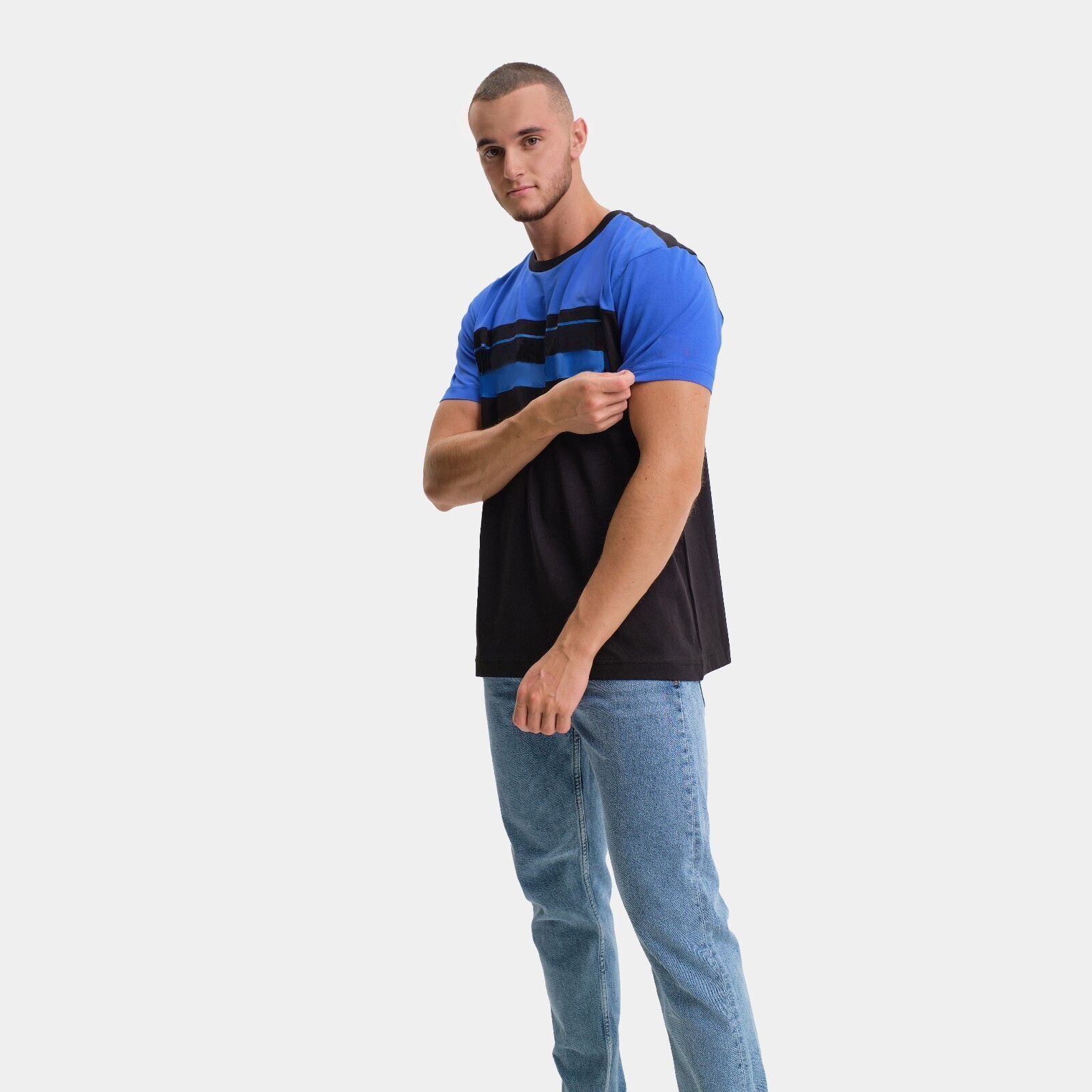 Футболка мужская, цвет синий/принт МИКС, размер M