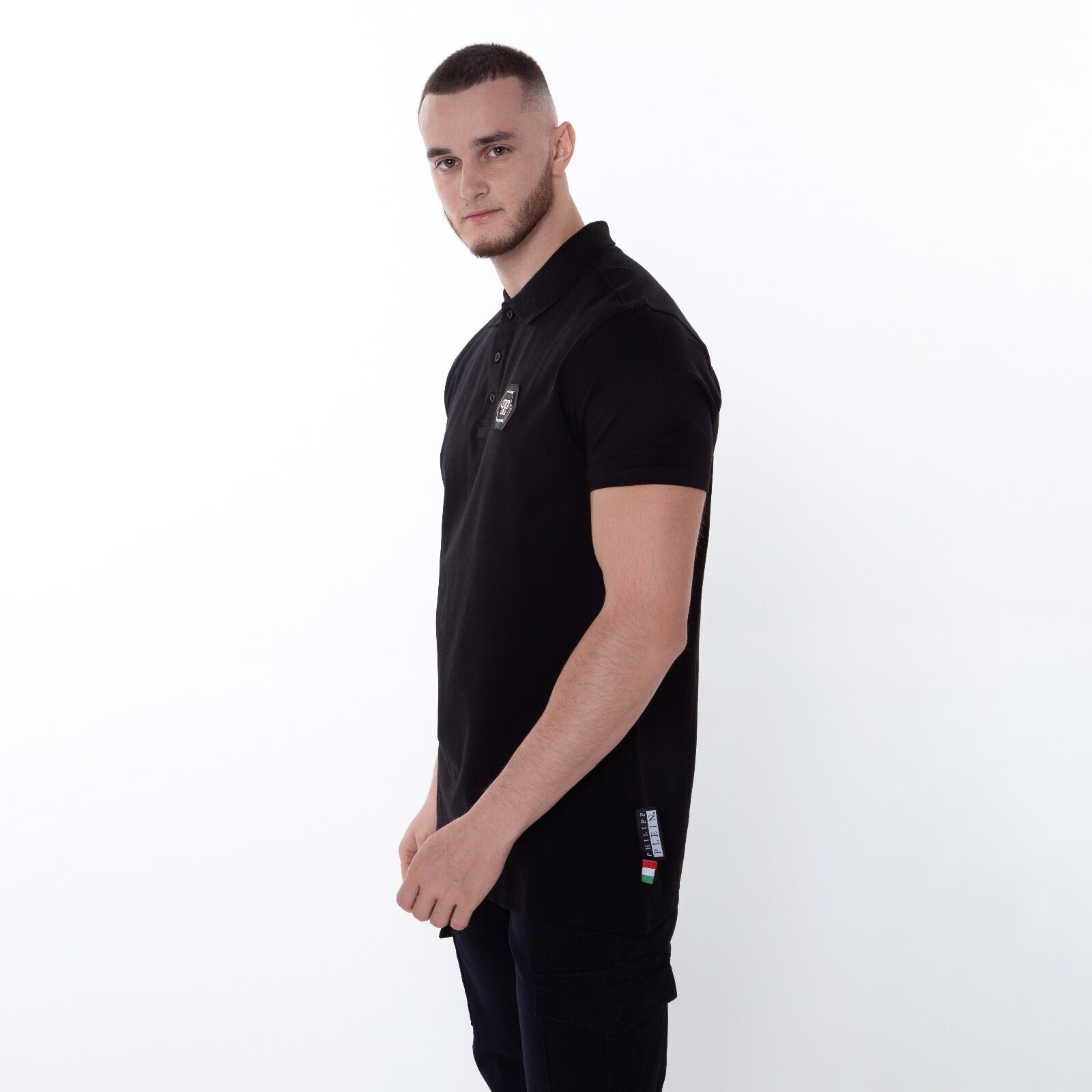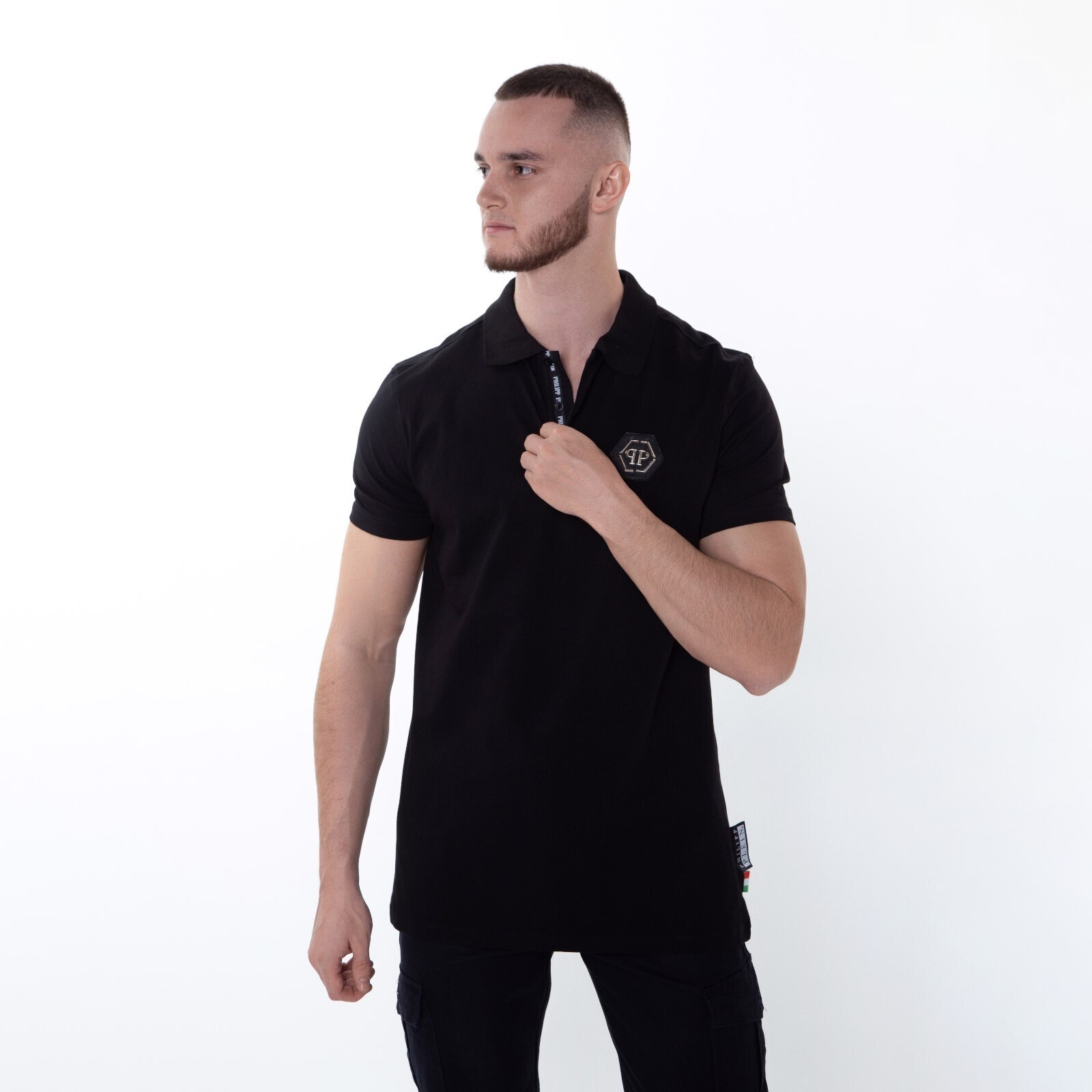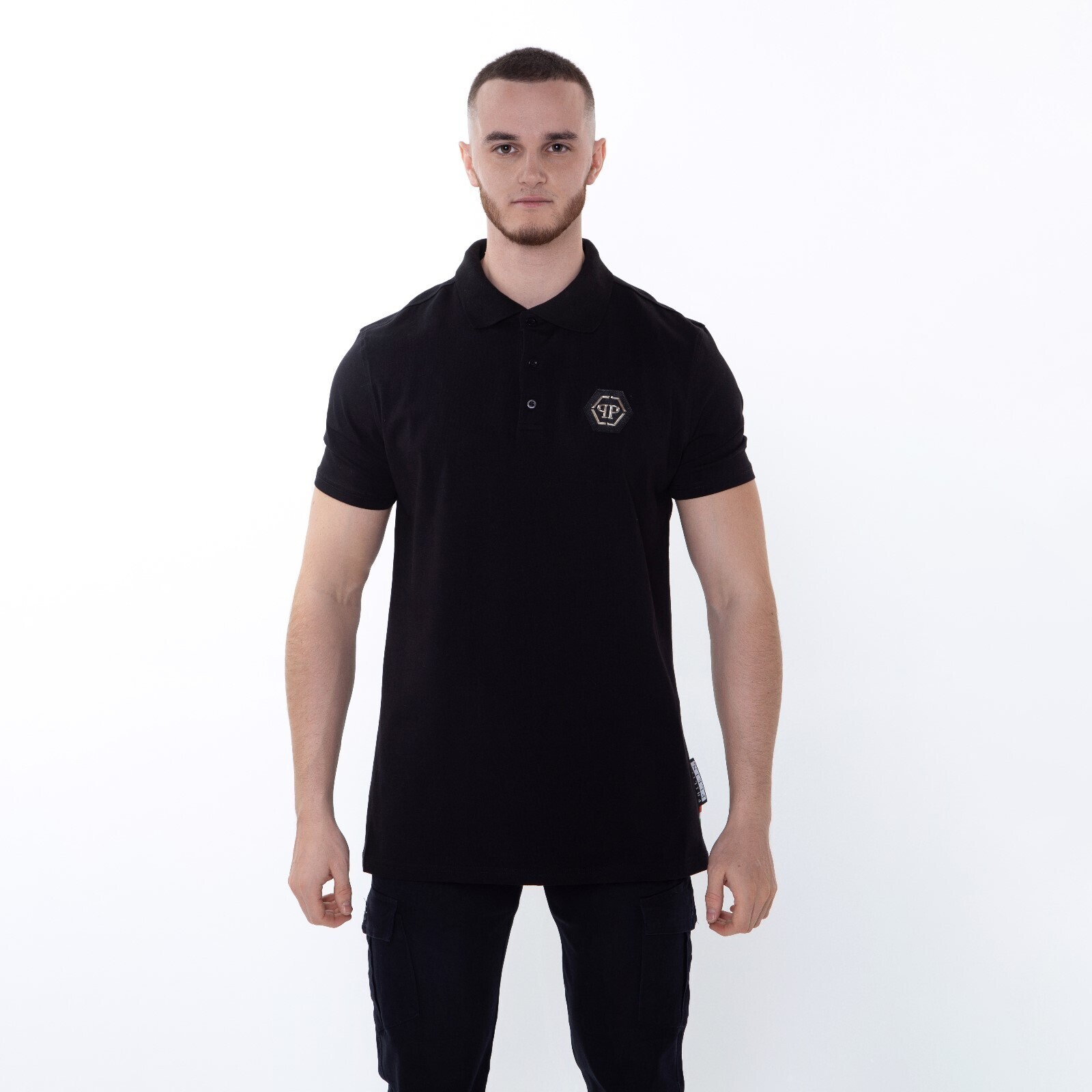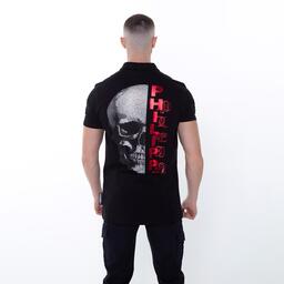Футболка поло мужская, цвет чёрный/принт МИКС, размер 2XL