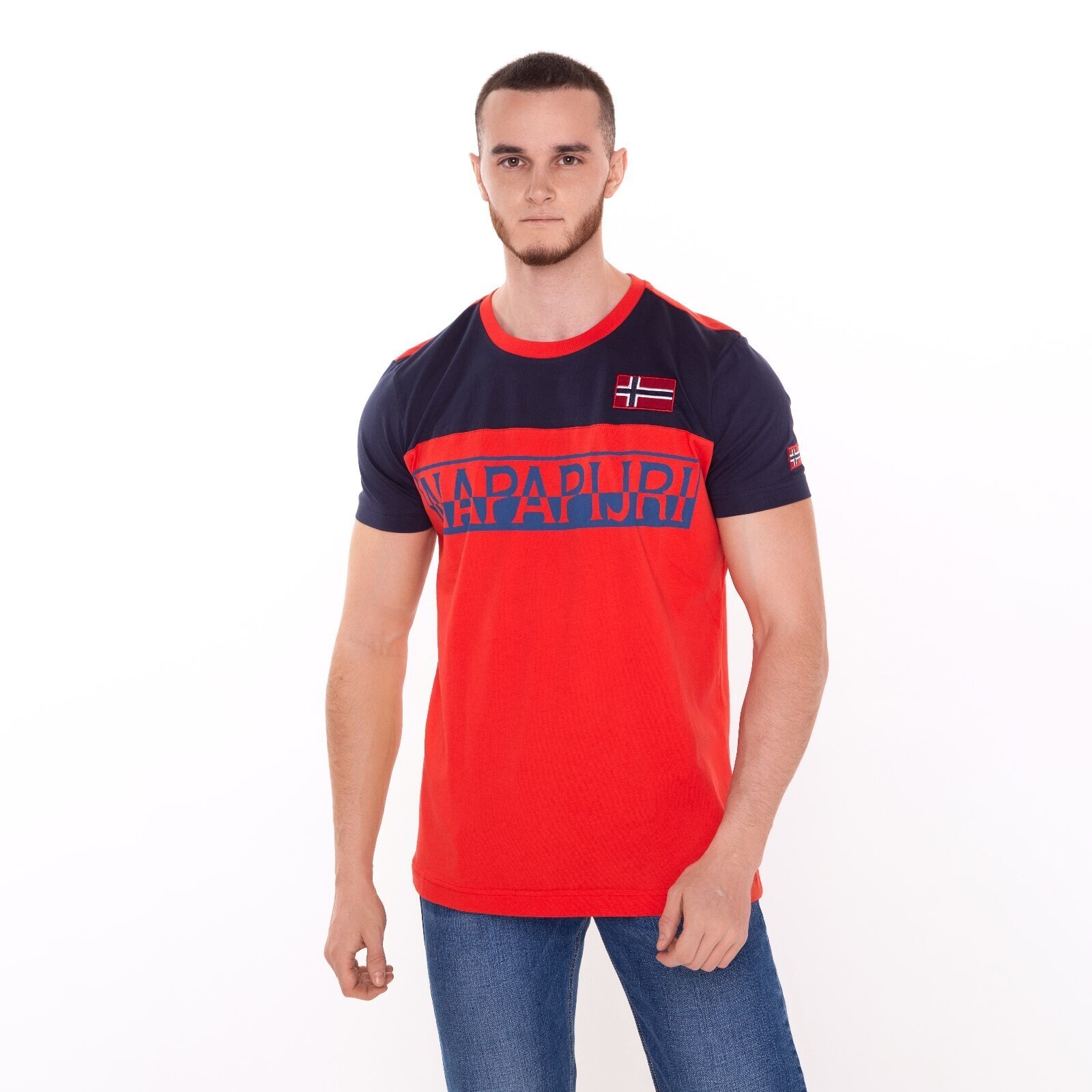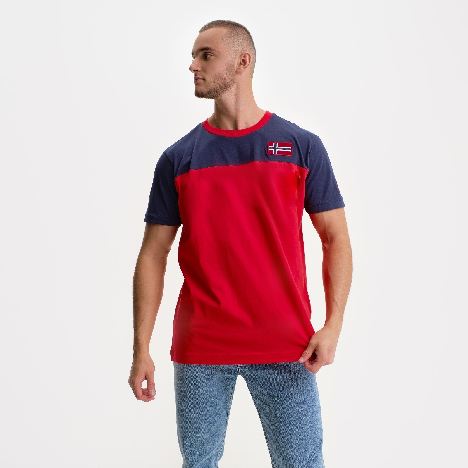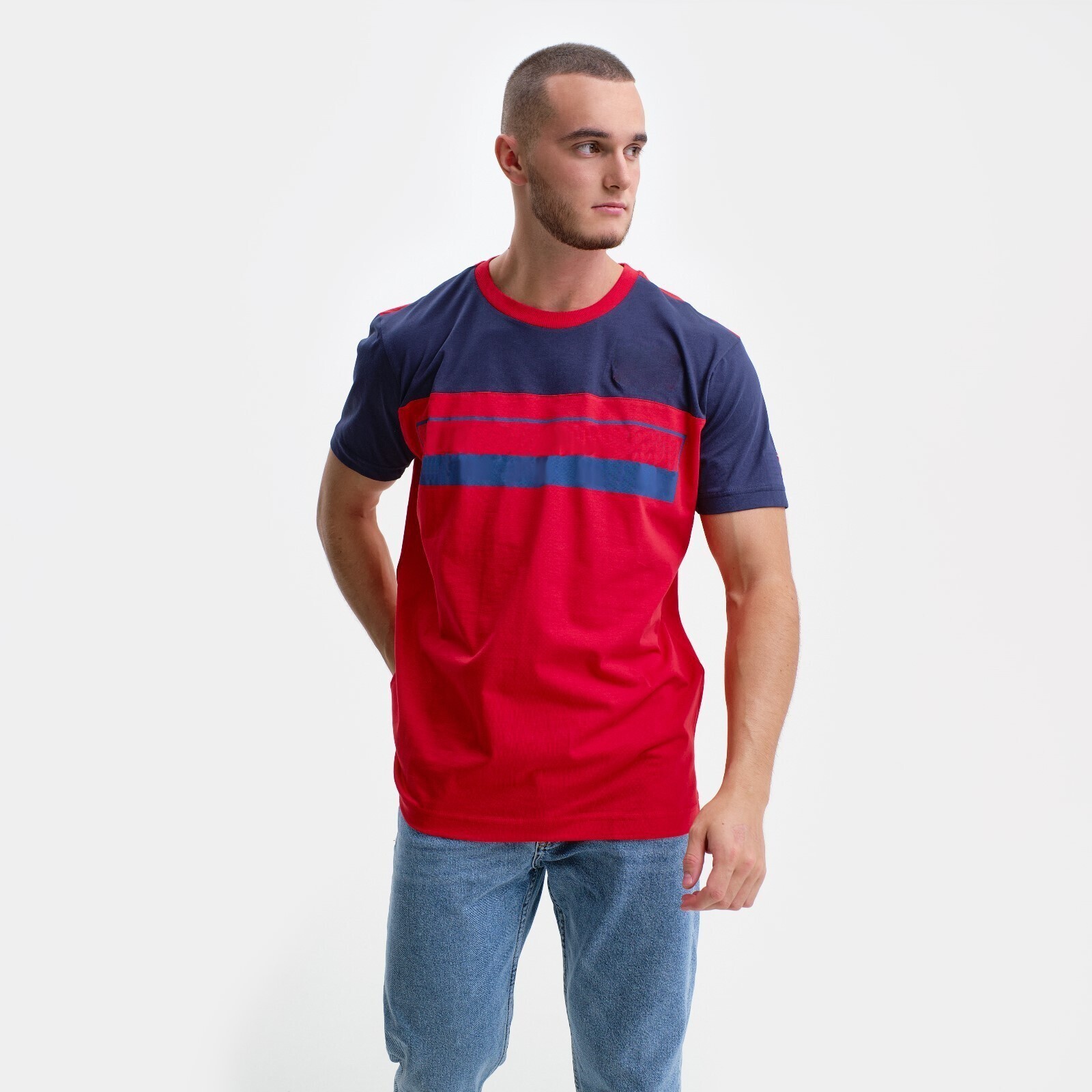 Футболка мужская, цвет красный/принт МИКС, размер M