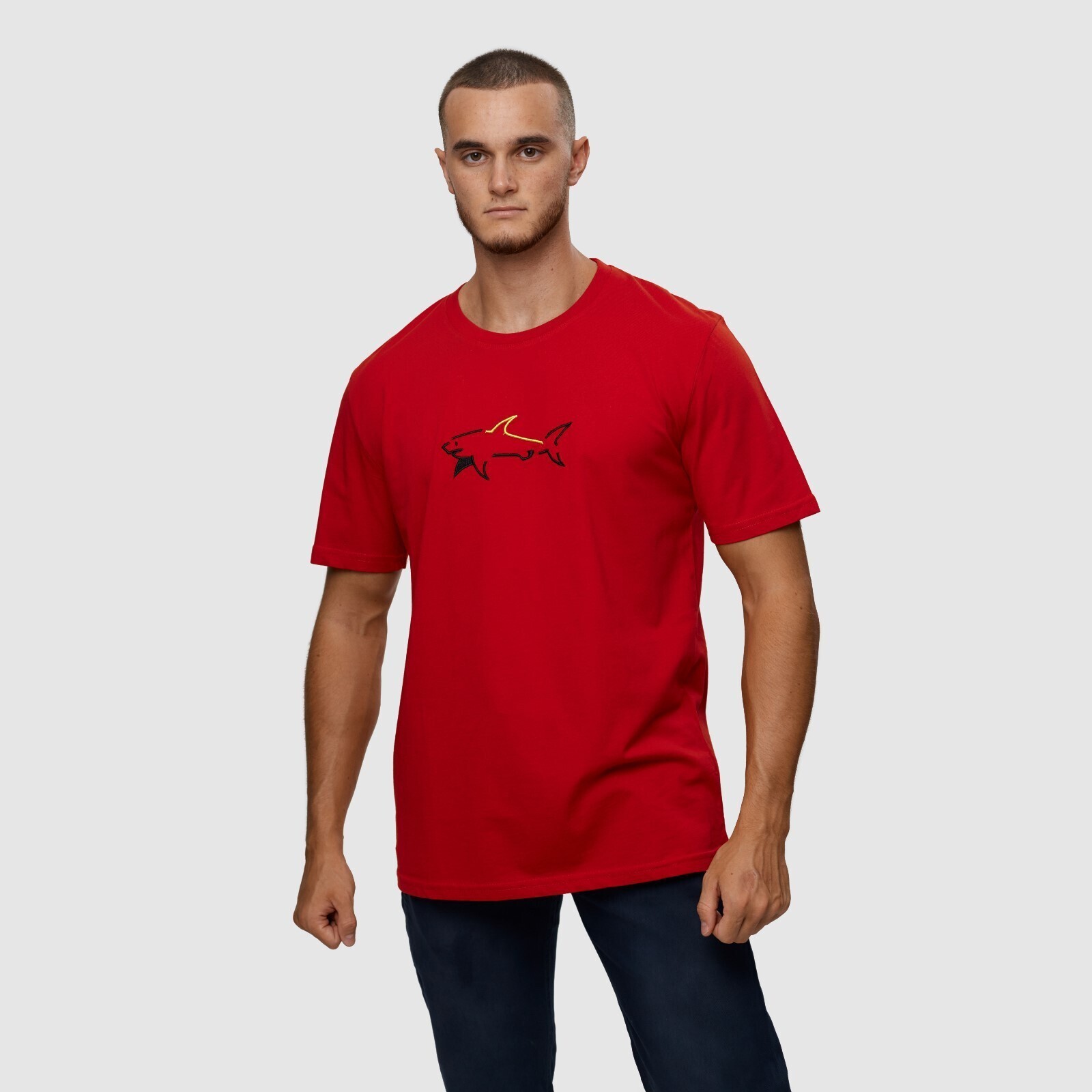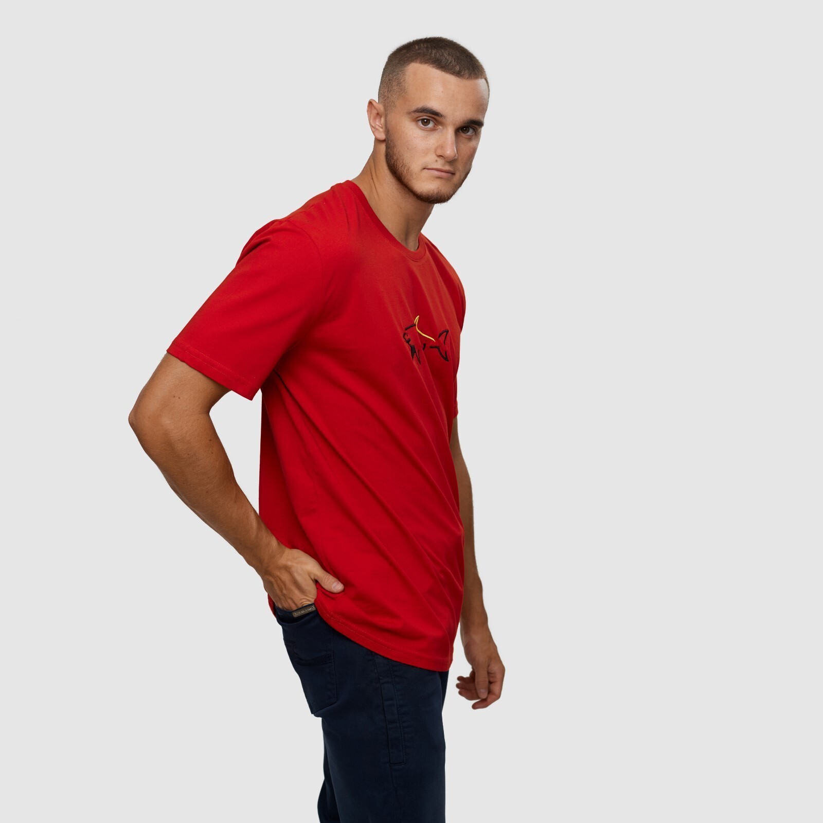 Футболка мужская, цвет красный/принт МИКС, размер S