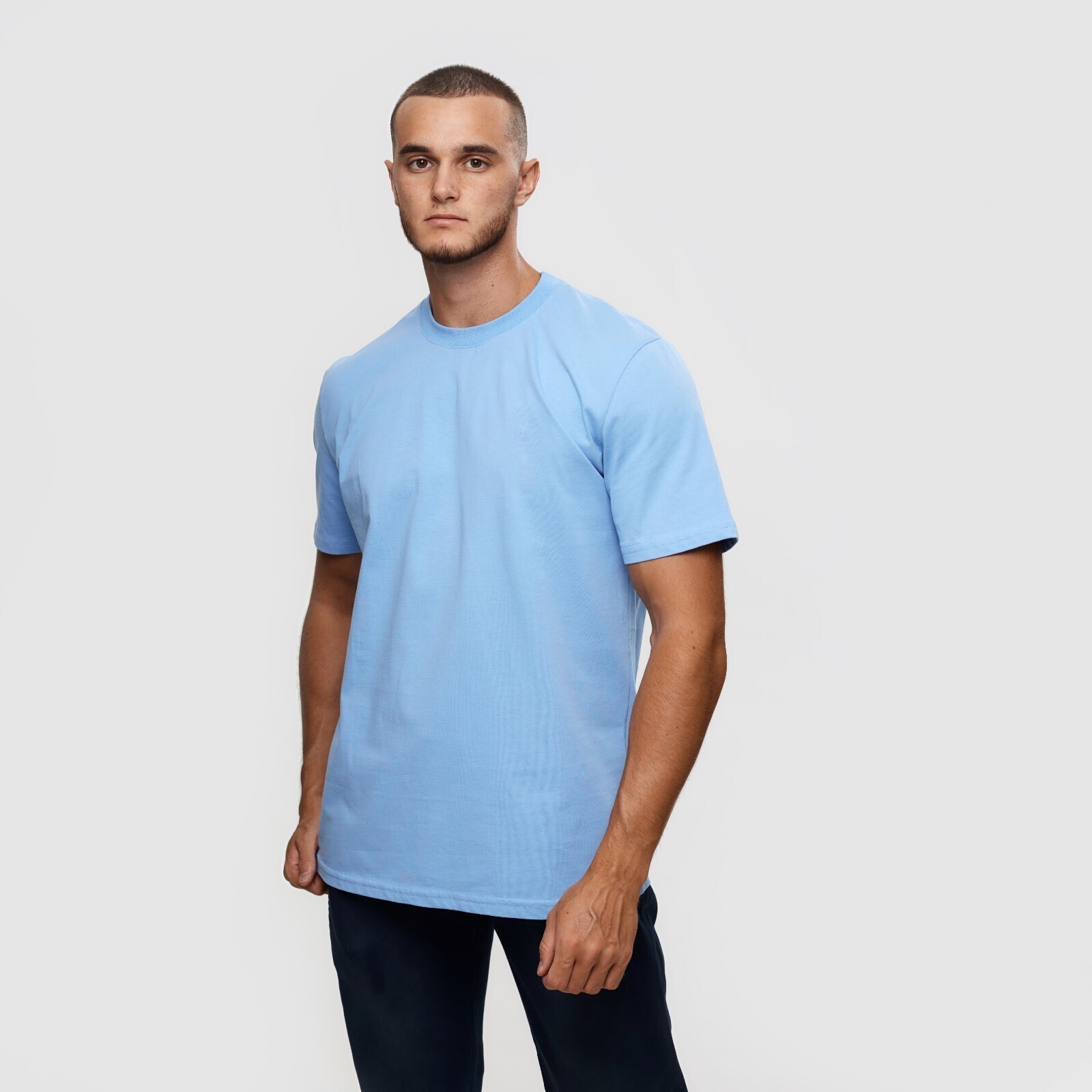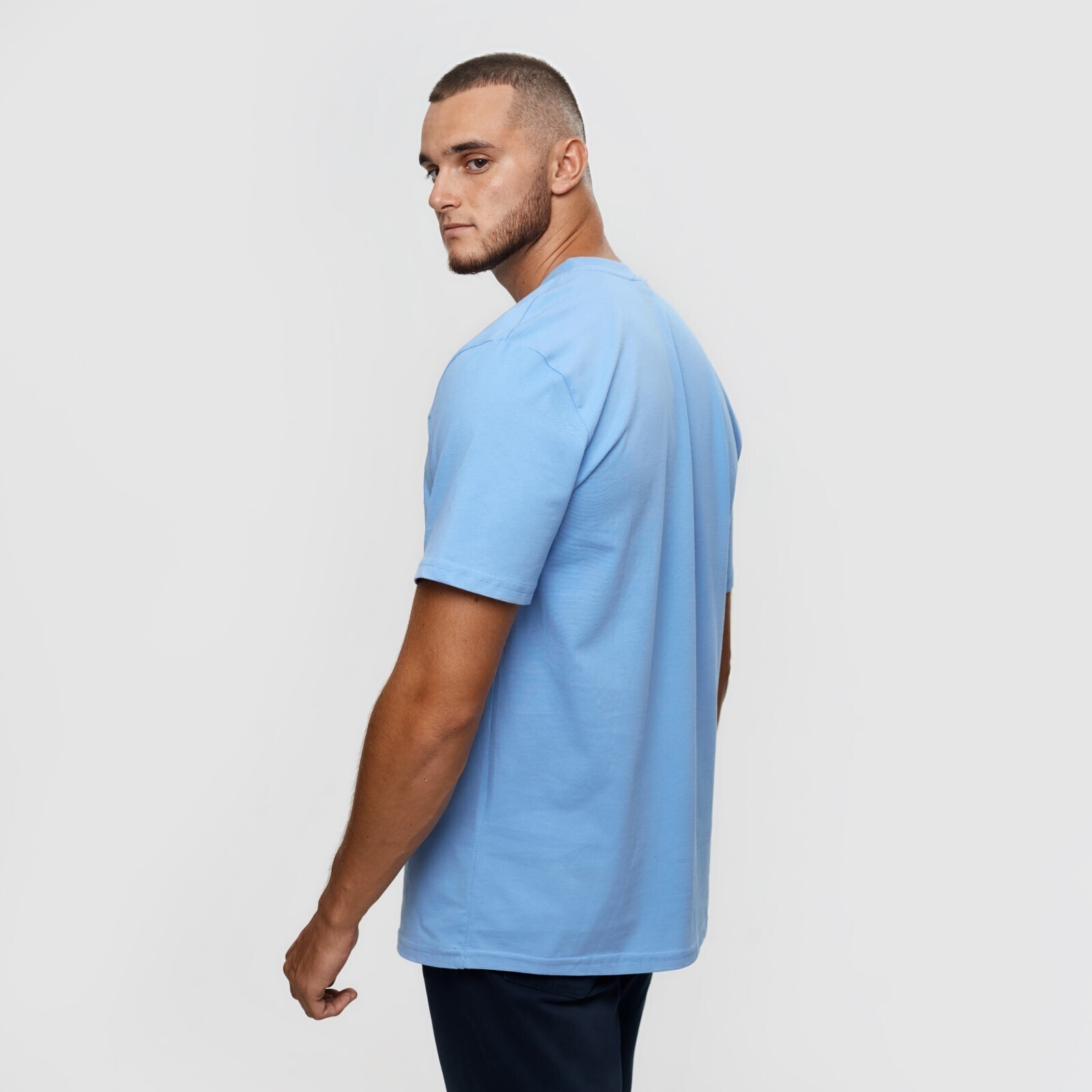 Футболка мужская, цвет голубой/принт МИКС, размер S