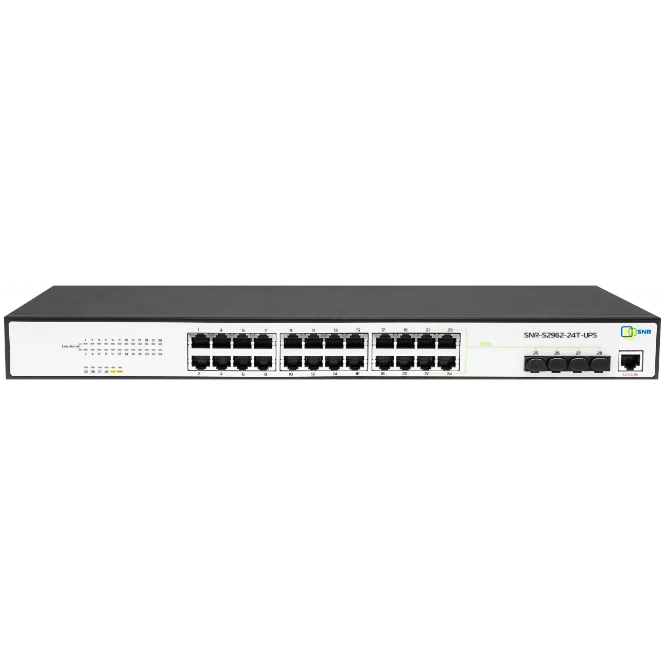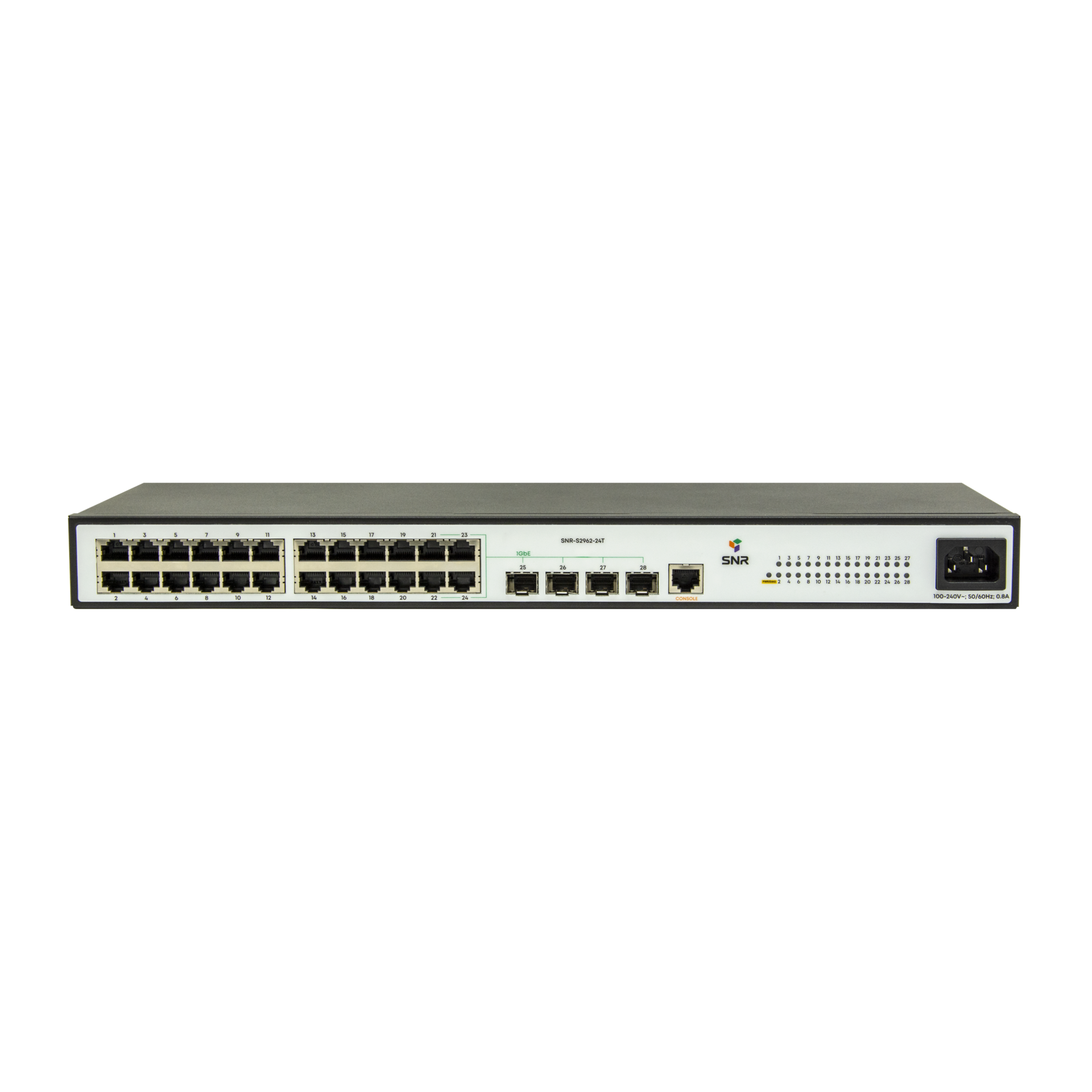 Коммутатор SNR-S2962-24T предназначен для использования на уровне доступа в сетях операторов связи и корпоративных сетях. SNR-S2962-24T оснащен 20 портами 10/100BaseTX, 4 портами 10/100/1000BaseT и 4 портами 100/1000BaseX SFP.