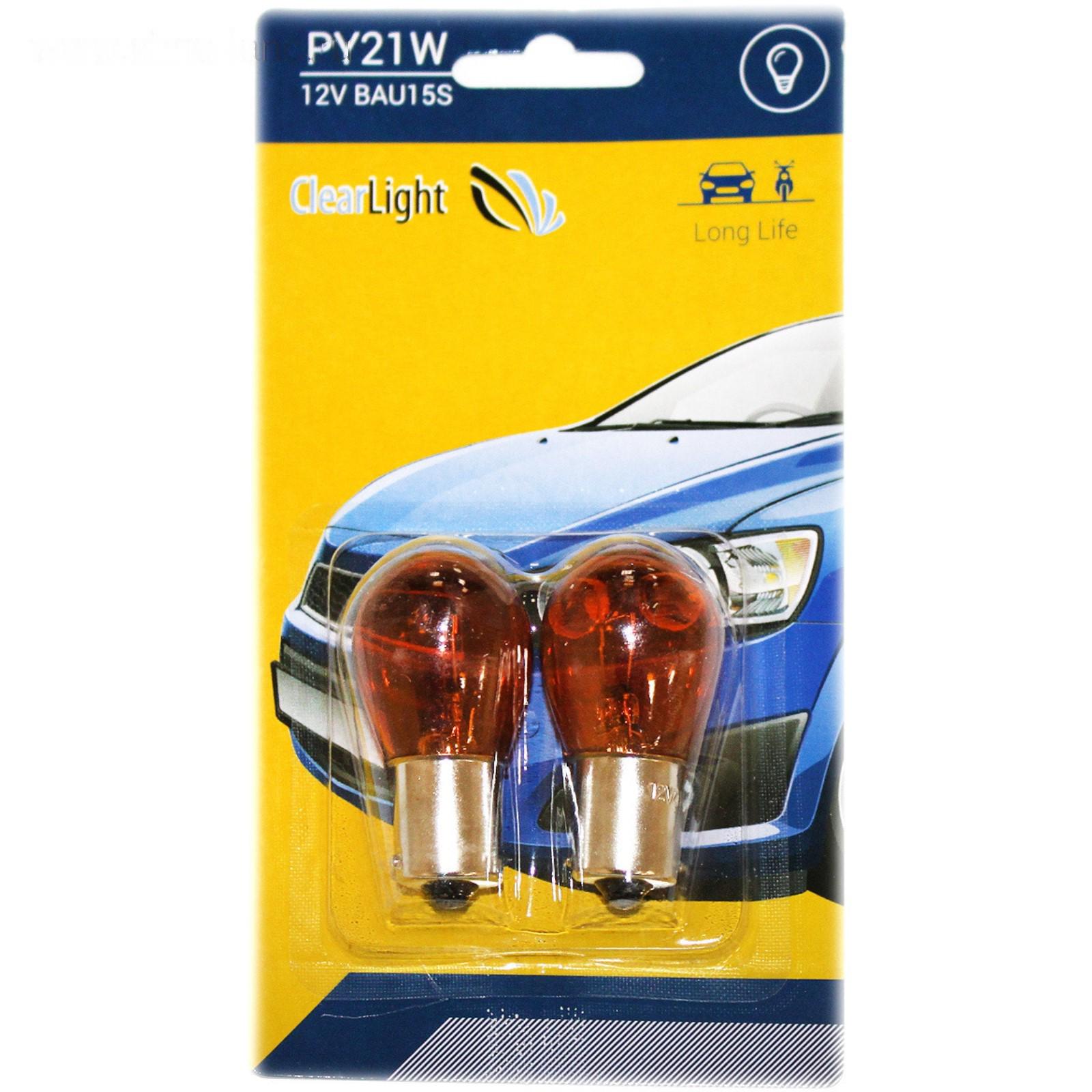 Лампа автомобильная Clearlight, PY21W, BAU15S, 12 В, набор 2 шт