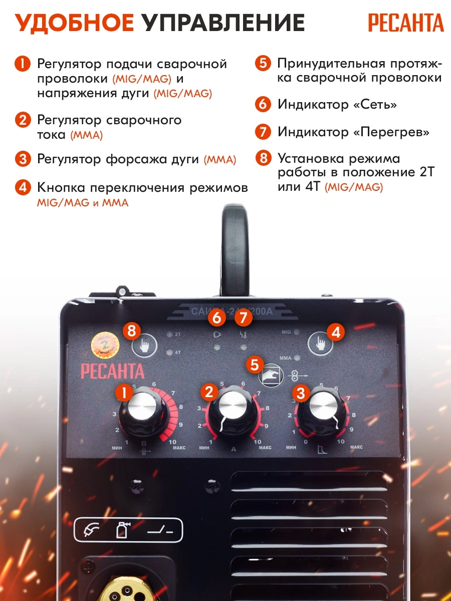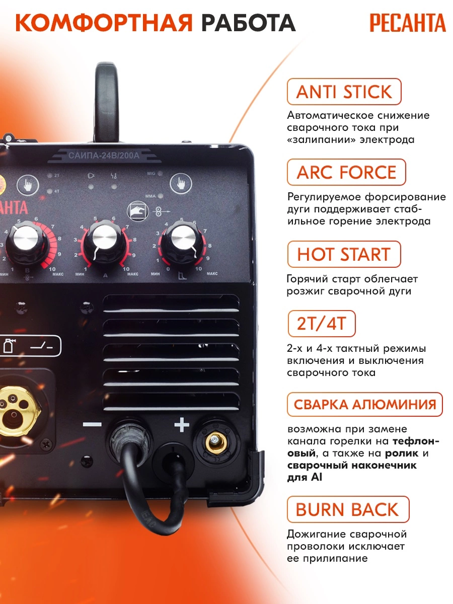 Сварочный полуавтомат Ресанта САИПА-24В/200А инвертор MIG-MAG 6.9кВт