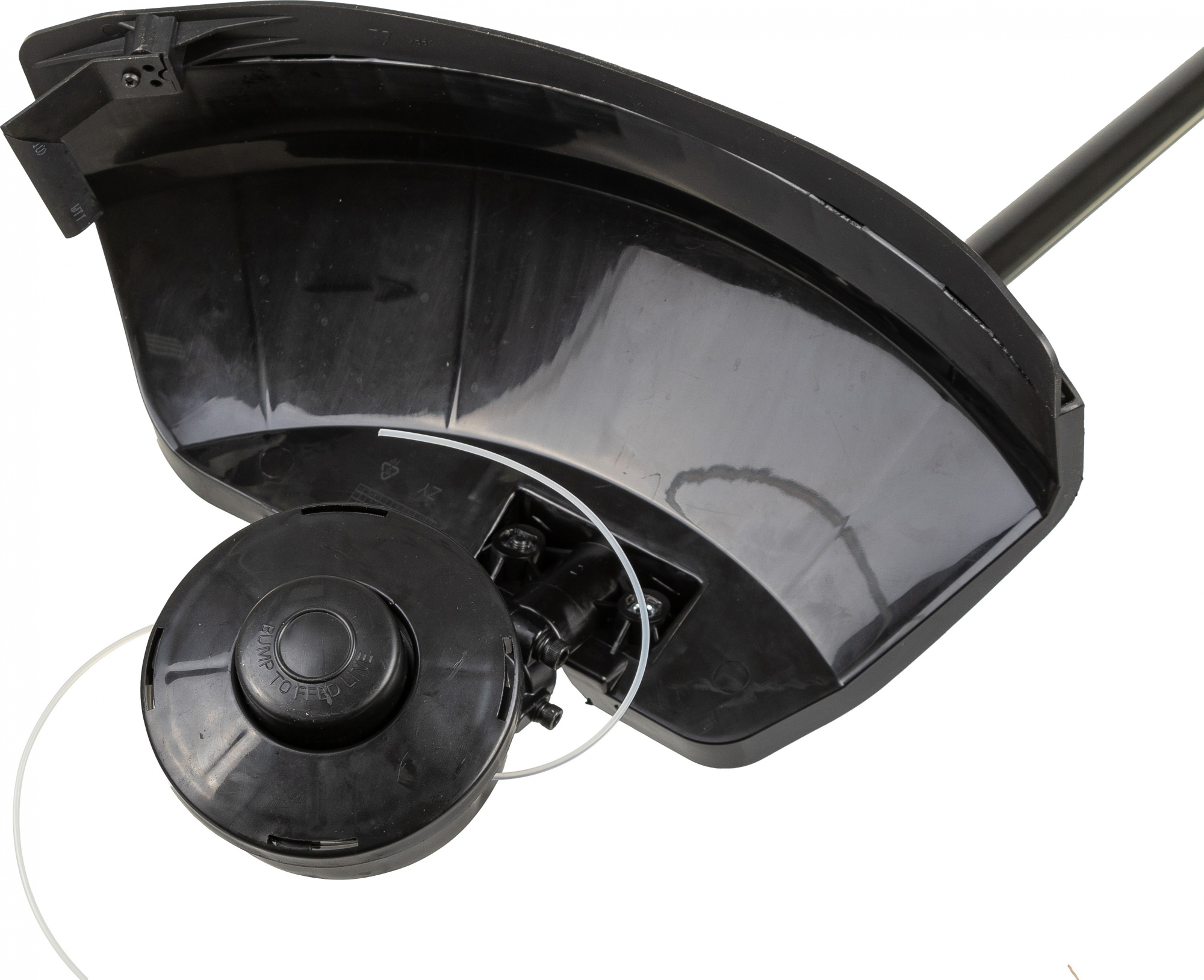 ОсобенностиУстановлен обрезчик лески, который регулирует длину лески и не дает перегрузить двигатель в случае ее излишнего вытягивания из катушки. Все элементы управления вынесены на удобную рукоятку управления.