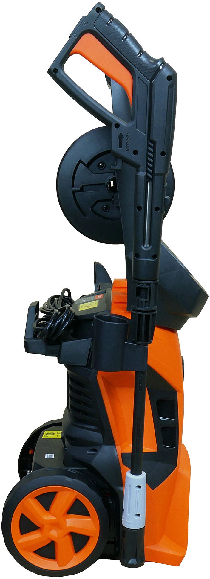 КомплектацияМойка, пистолет-распылитель, направляющая трубка, игла для прочистки распыляющего наконечника, шланг высокого давления, гайка впускного патрубка для воды, рукоятка, крюк для шнура, подставка для направляющей трубки, колеса, крепление направляющей трубки, катушка для шланга, ручка катушки, крепеж
