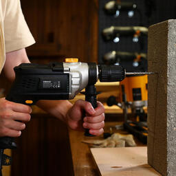 Комплект поставкиДрель, дополнительная рукоятка, кейс, глубиномер, угольные щетки - 2 шт., руководство по эксплуатации.