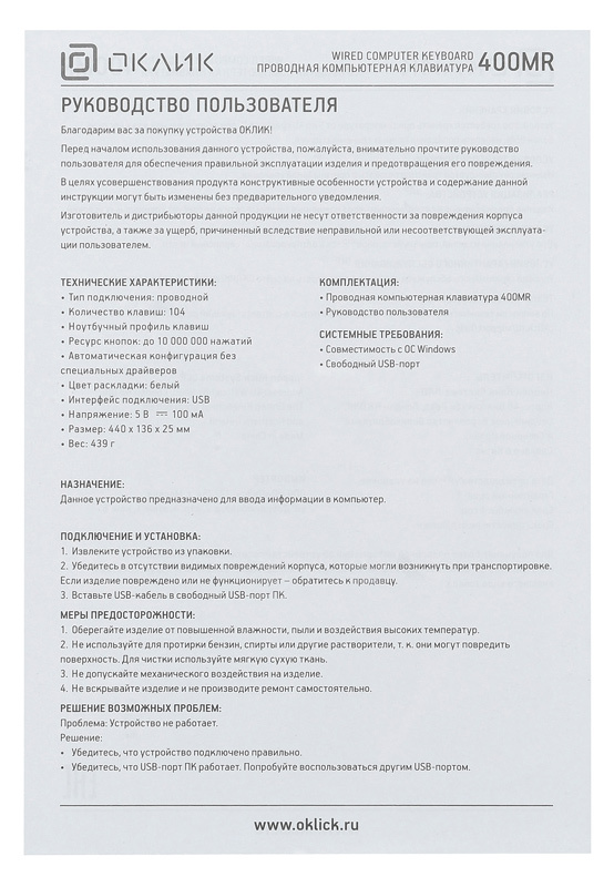 • Ссылка на сайт поставщика/вендора https://oklick.ru/catalog/item/2719