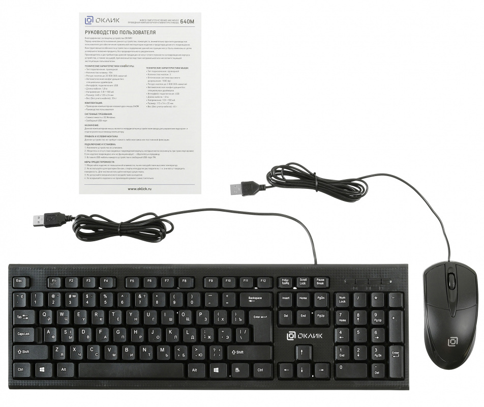 • Комплект поставки Проводная компьютерная клавиатура и мышь 640M