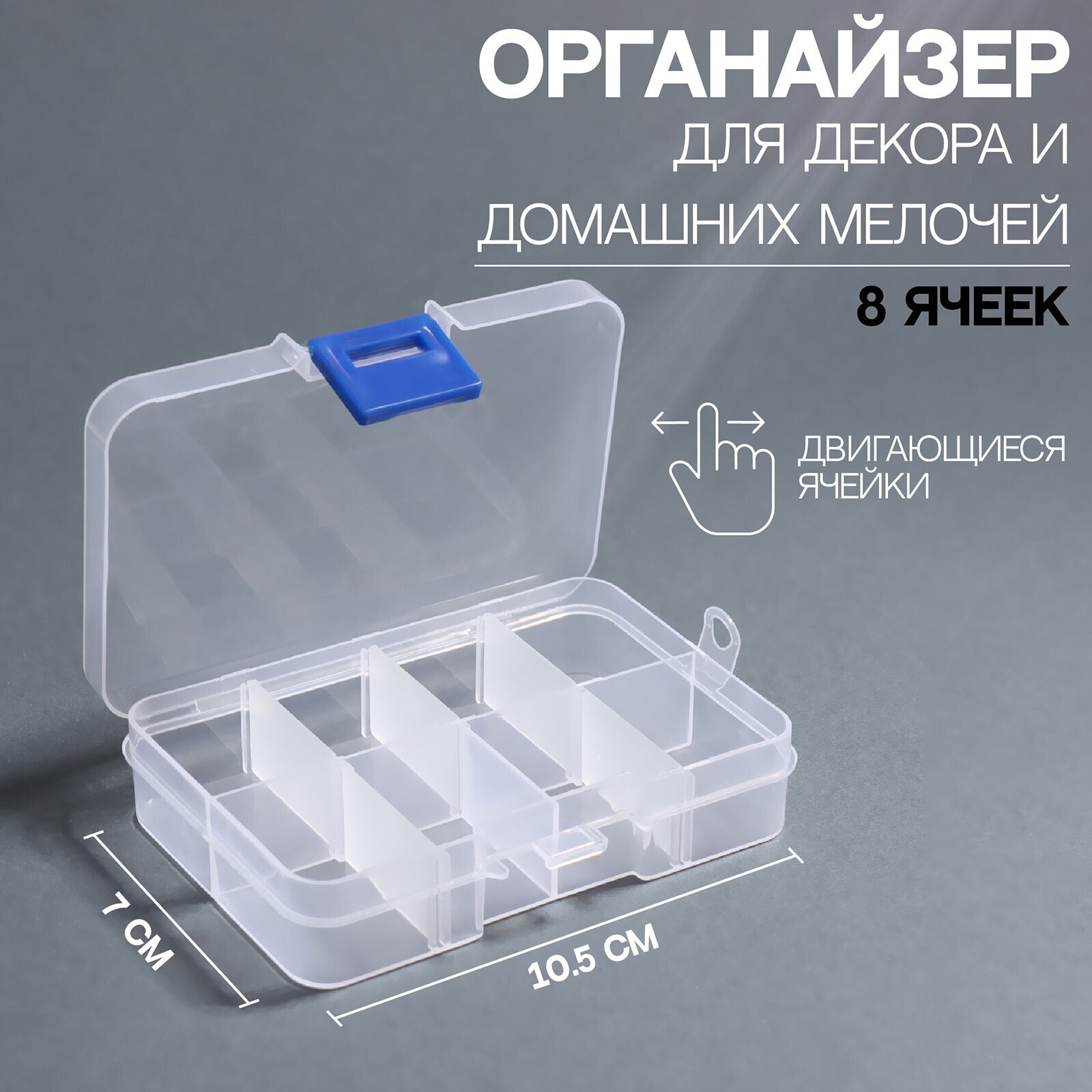 Контейнер для декора, передвижные ячейки, 8 ячеек, 10,5 × 7 × 2,4 см, цвет прозрачный