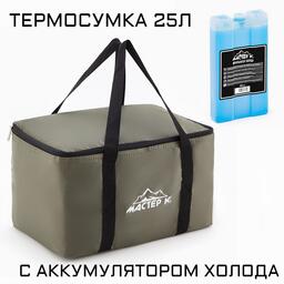 Термосумка и аккумулятор холода "Мастер К", 25 л, сохраняет холод до 6 ч, 40х24х24 см, хаки