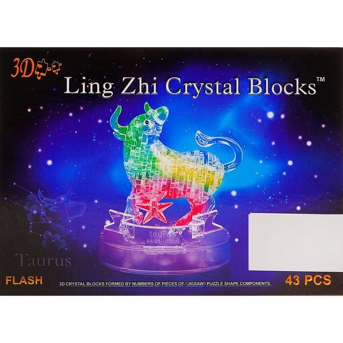 Пазл 3D кристаллический, «Знак зодиака Телец», 43 детали, световые эффекты, работает от батареек