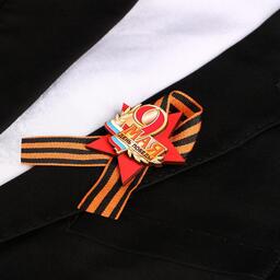 Значок деревянный с лентой "9 Мая. День Победы" звезда