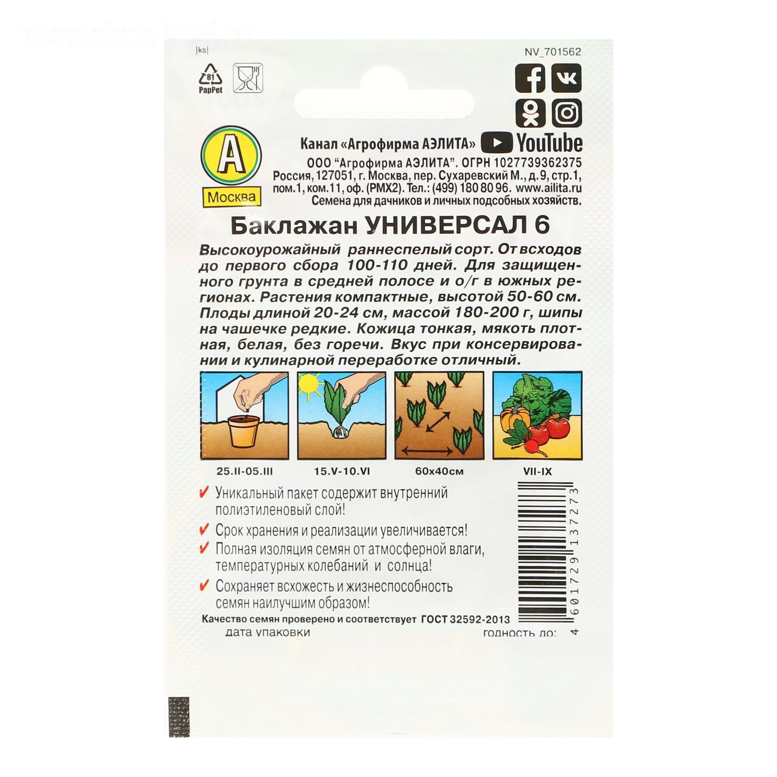 Семена Баклажан «Универсал 6», Лидер 0,3 г