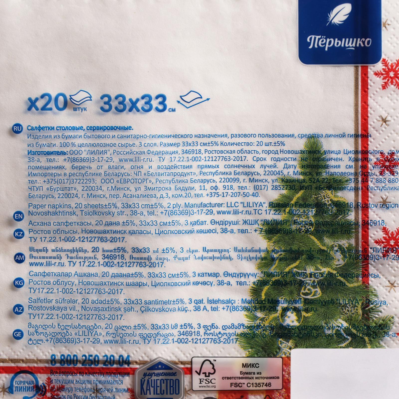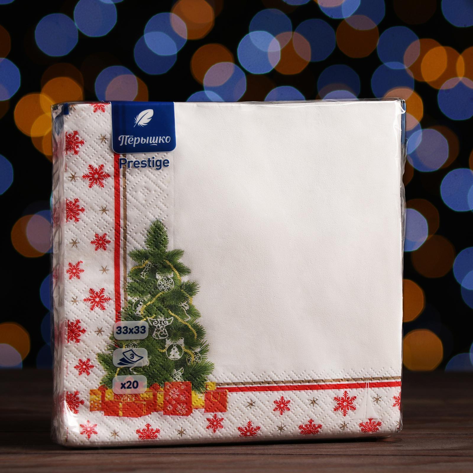 Новогодние салфетки бумажные Перышко Prestige 33х33 "Ожидание праздника" 3сл 20л.