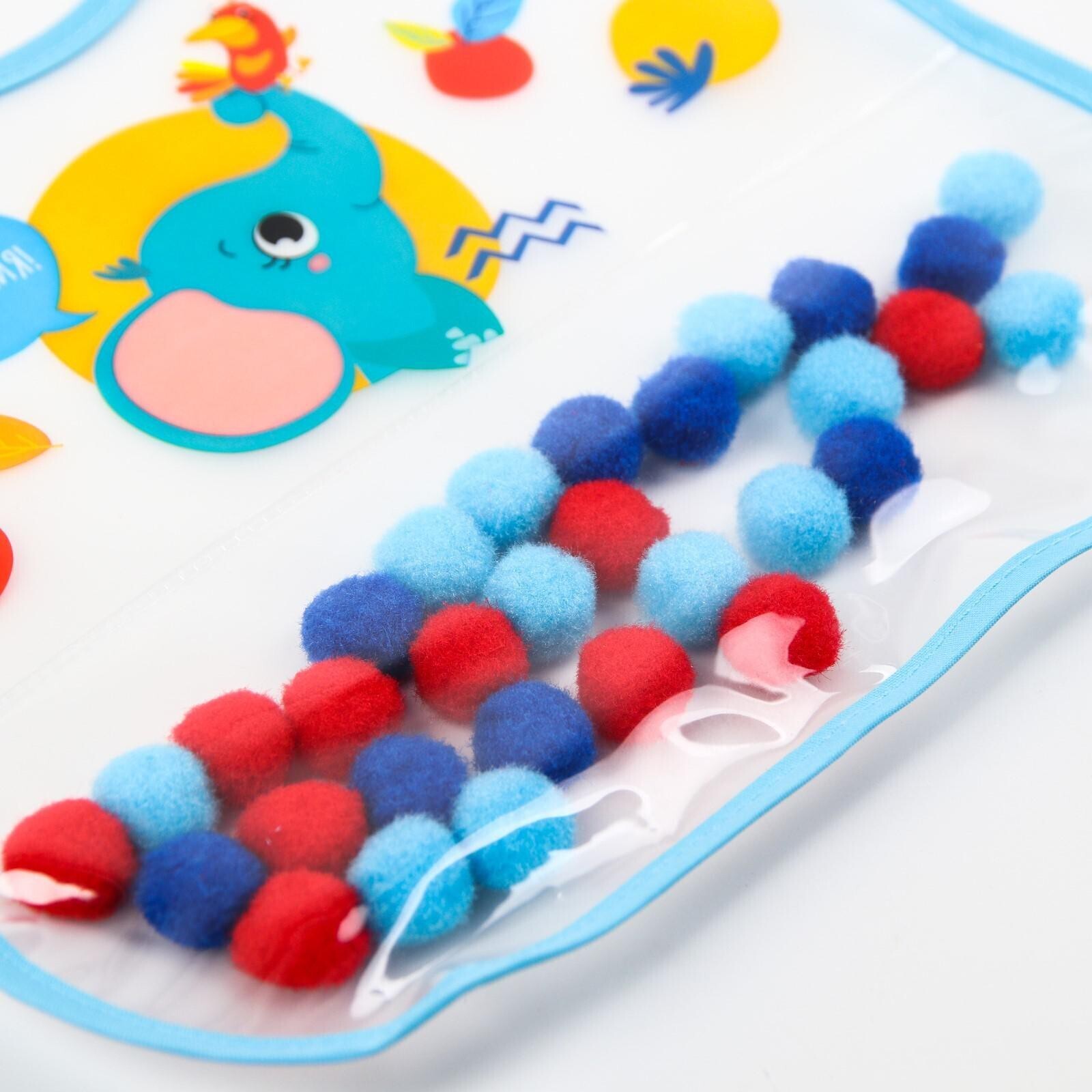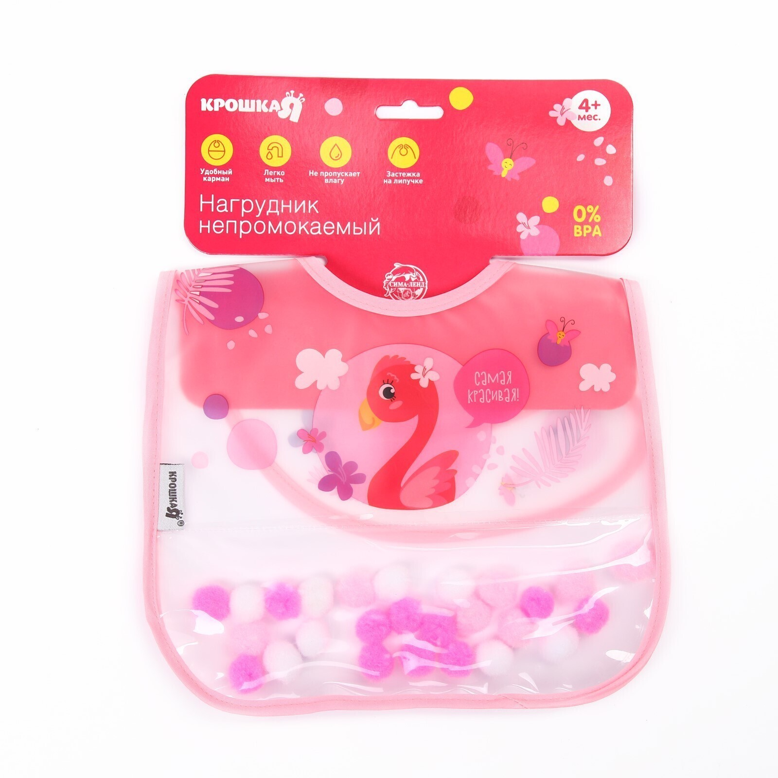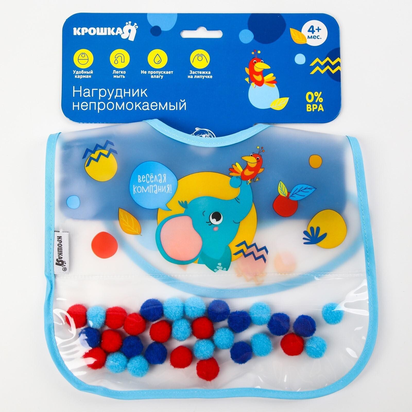 Нагрудник для кормления «Крошка - помпошка» непромокаемый на липучке, с помпошками, МИКС