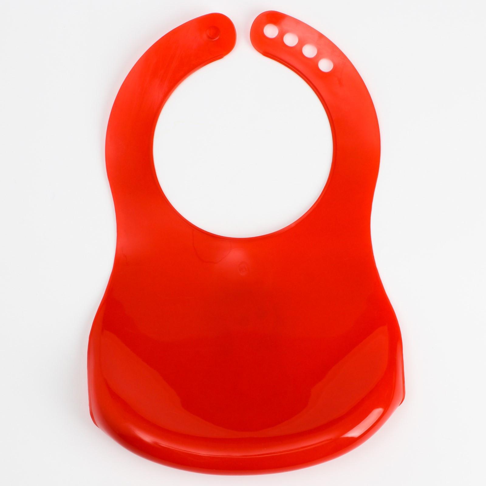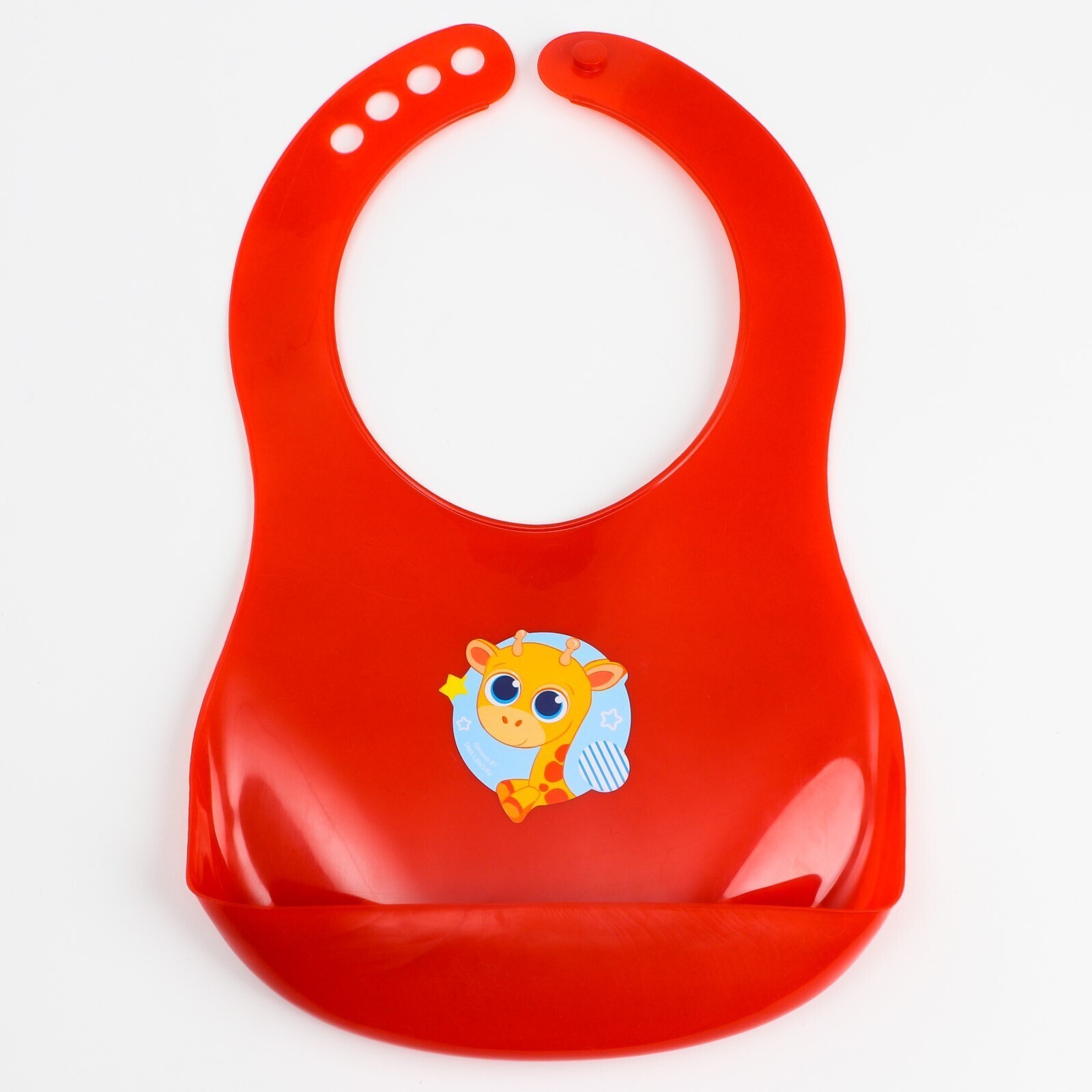 Нагрудник для кормления «Жирафик» пластиковый с карманом, цвет красный