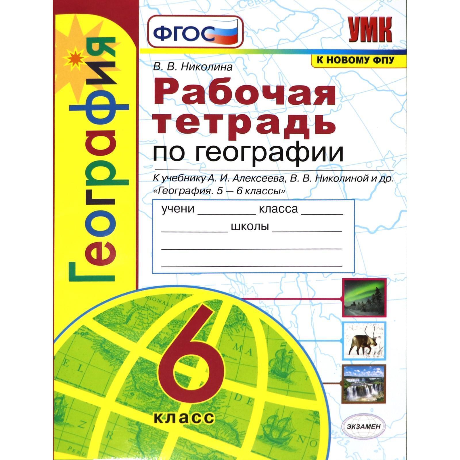 Рабочая тетрадь. ФГОС. Рабочая тетрадь по географии к учебнику А. И. Алексеева, к новому ФПУ 6 класс. Николина В. В.