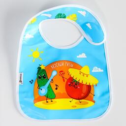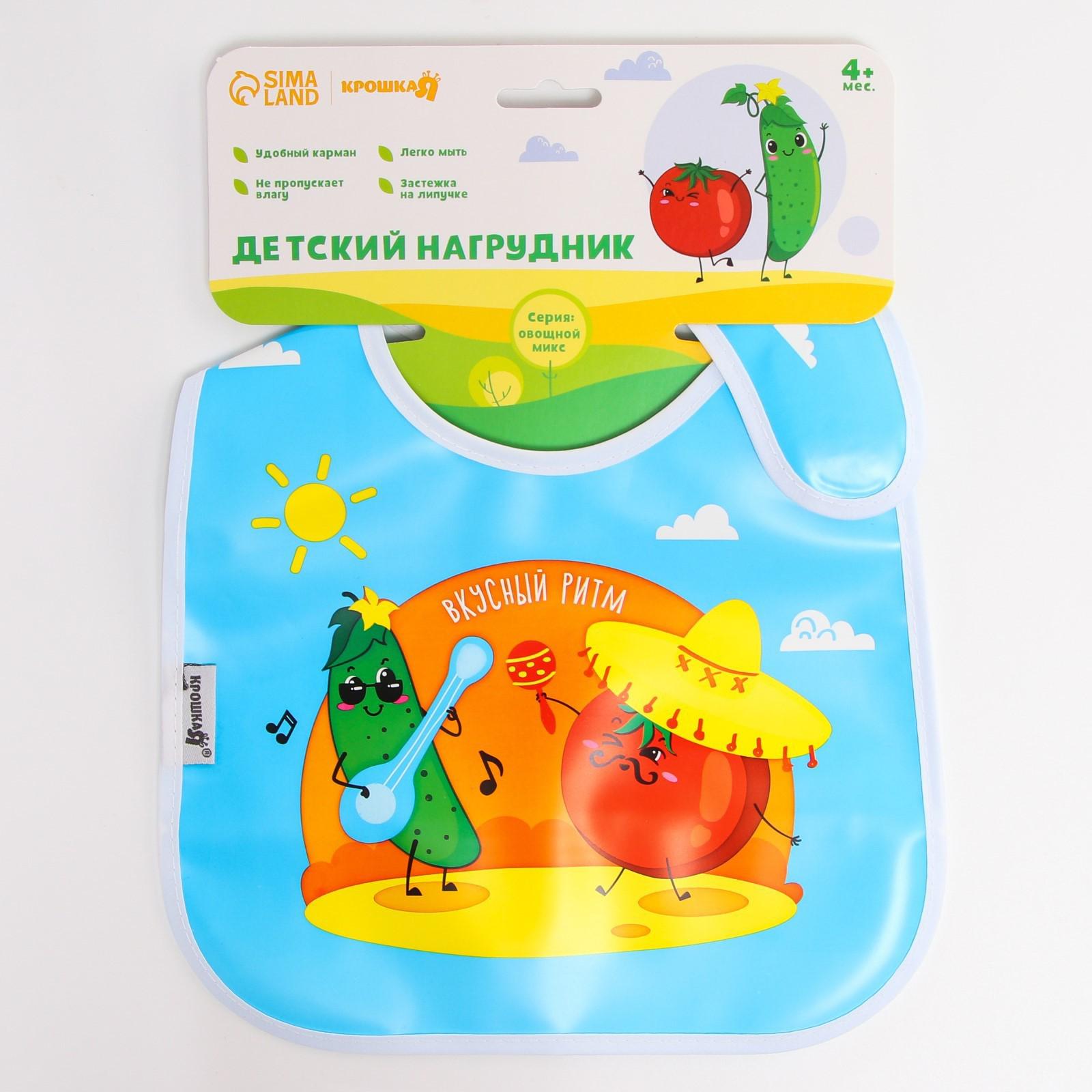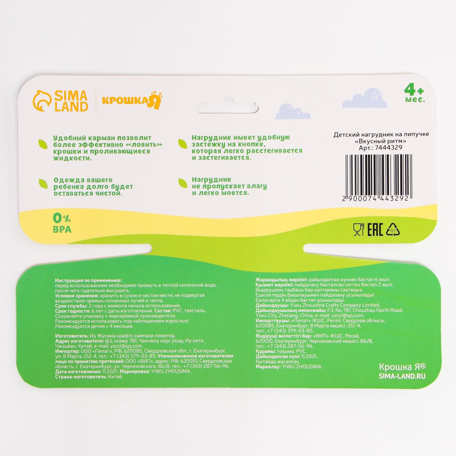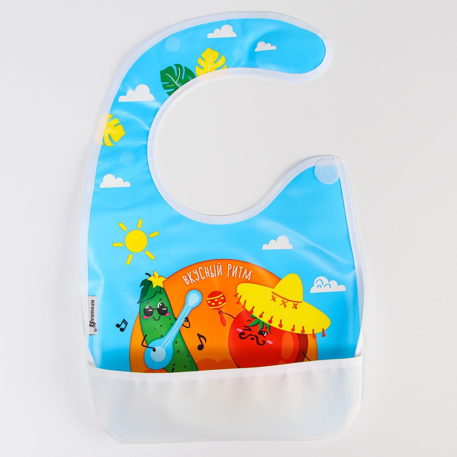 Нагрудник для кормления «Вкусный ритм» непромокаемый на липучке, с карманом