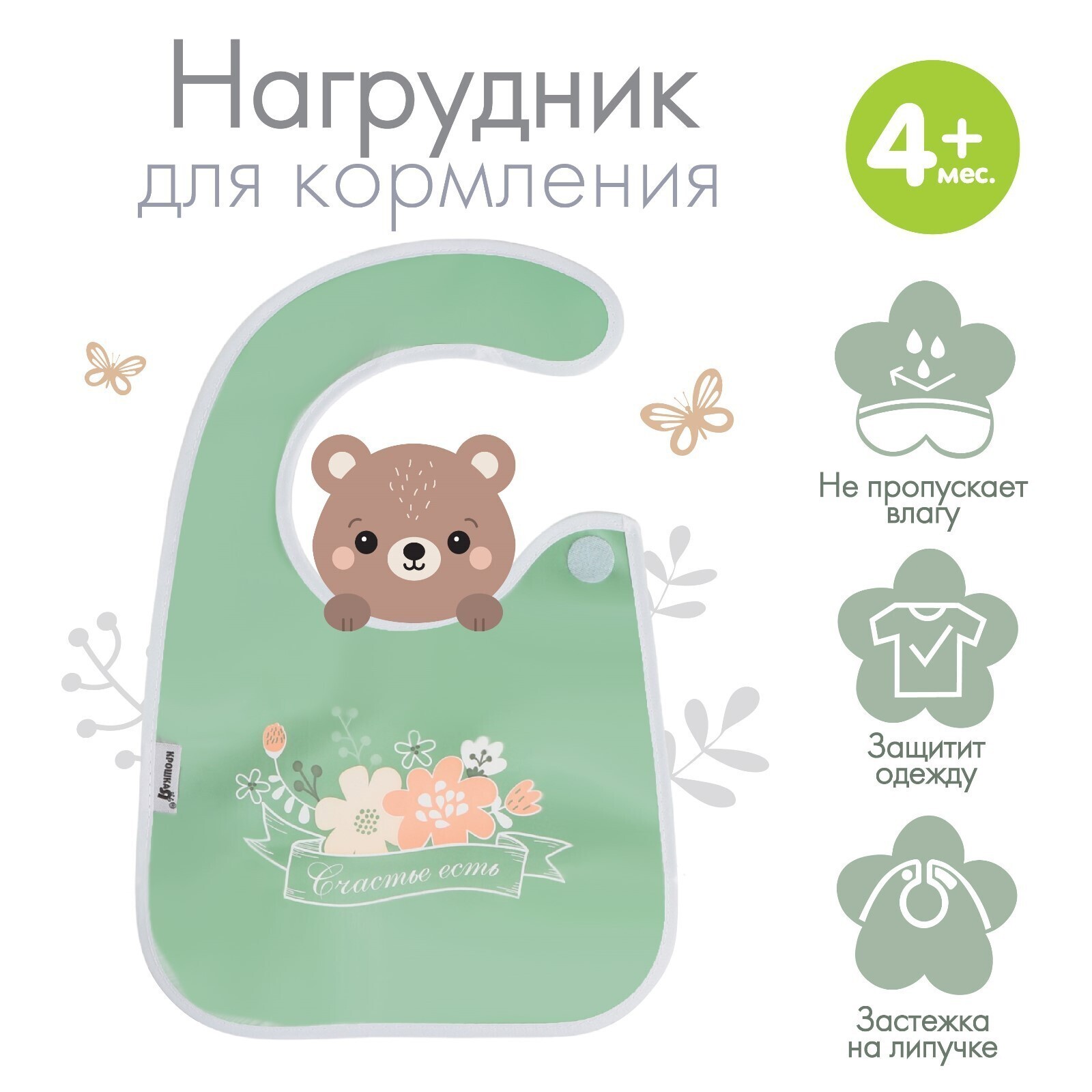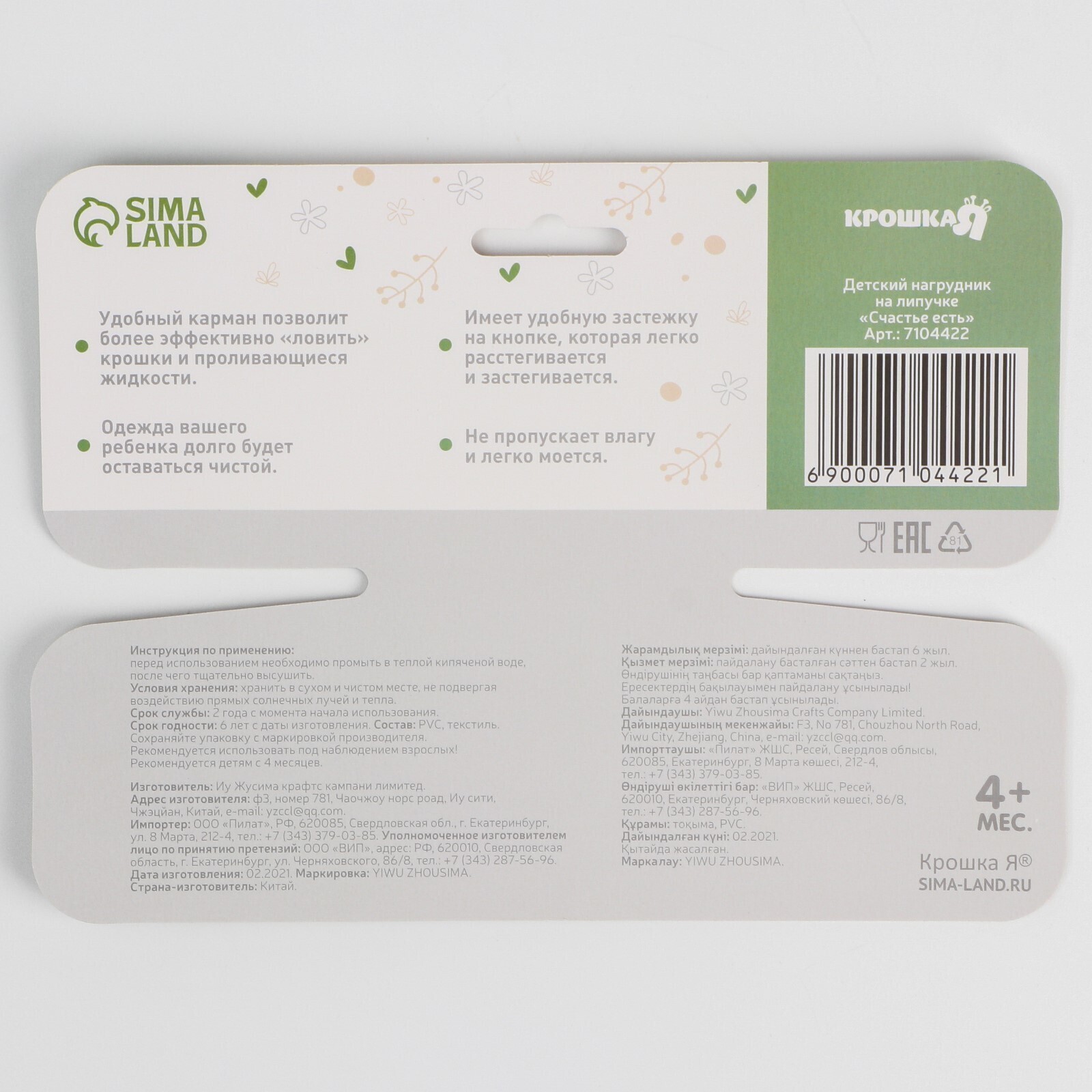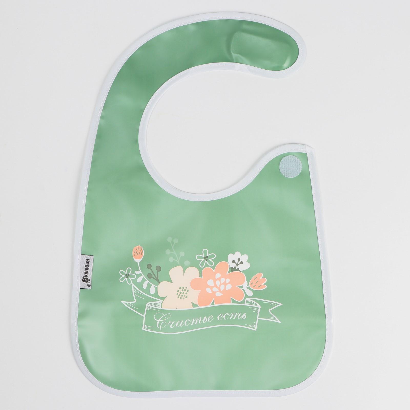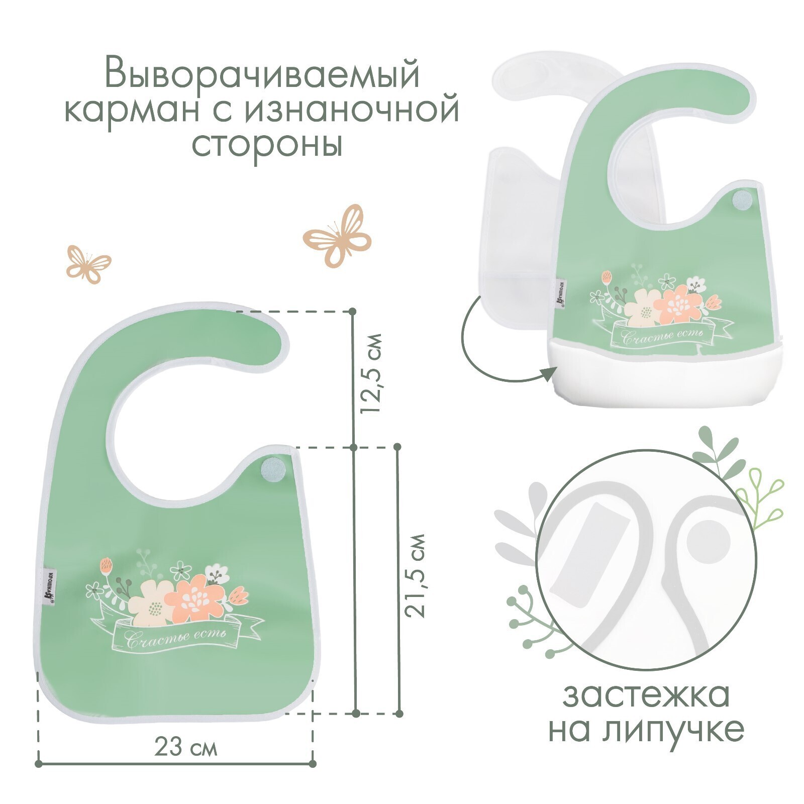Нагрудник для кормления «Счастье есть» непромокаемый на липучке, с карманом