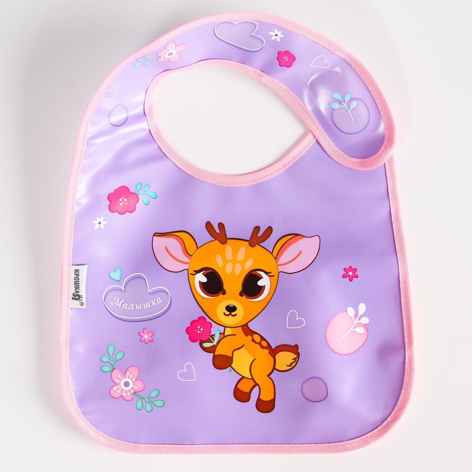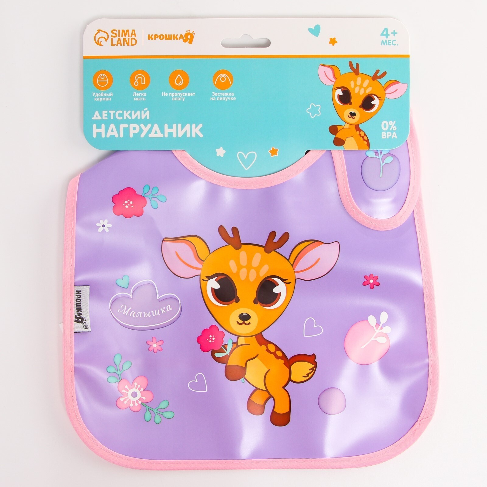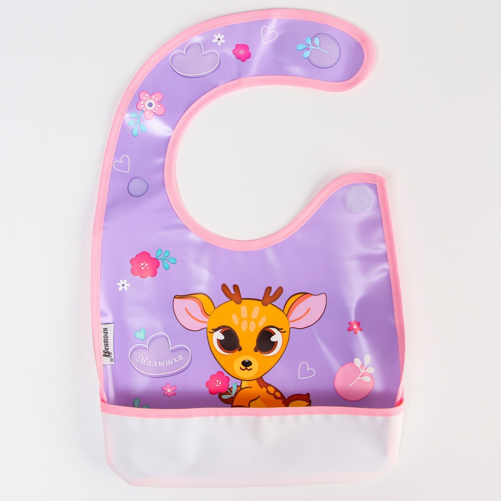 Нагрудник для кормления «Оленёнок» непромокаемый на липучке, с карманом