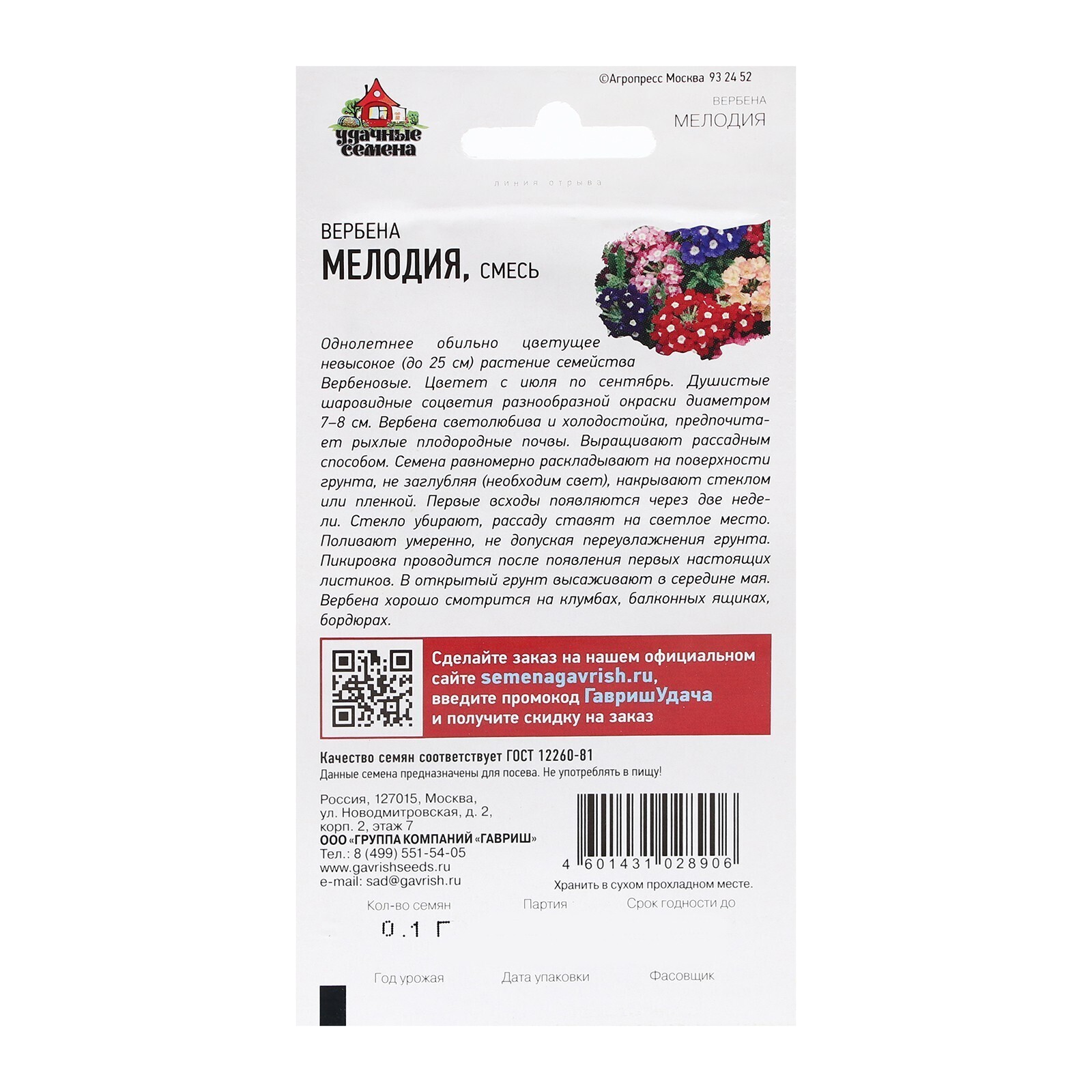 Семена Вербена гибридная "Мелодия", смесь, 0,05 г