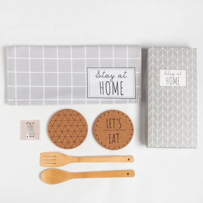 Набор подарочный Stay at home: полотенце, подставки, кухонная ложка, кухонная лопатка