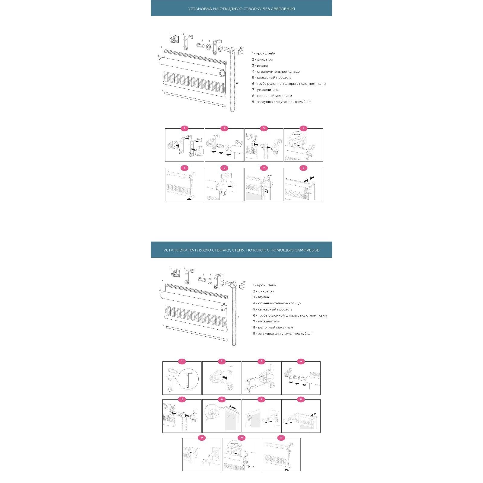 • Тип крепления Вал - ролет, Крючки (клипсы), Липкая лента, Шурупы