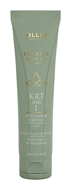 Шампунь Ollin Keratin Royal Treatment – это первый этап во время проведения процедуры кератинового восстановления волос. Продукт обладает мягко-щелочной рН формулой и отличными очищающими качествами, что оказывает на пряди комплексное воздействие и позволяет: полностью убрать с поверхности локонов все загрязнения, в том числе трудно поддающиеся осадки водопроводной воды, силиконы, остатки продуктов для стайлинга, сделать волосы максимально восприимчивыми к кератированию, повысить результативность всей процедуры в целом; слегка приоткрыть чешуйки кутикулу, облегчив тем самым путь питательным веществам к кортексу каждого волоска.Дополнительно состав шампуня Ollin Keratin Royal Treatment обогащен натуральным кератином и провитамином В5. Этот коктейль приносит прядям необходимую влагу, укрепляет и оздоравливает по всей длине, делает локоны эластичными, гладкими и шелковистыми, а также успокаивает и смягчает кожу головы.