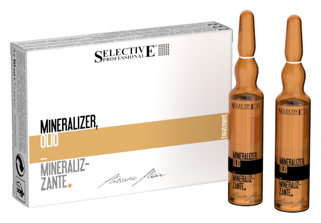 Масло Selective Professional Mineralizer с активными минералами в составе из линейки средств Artistic Flair эффективно реконструирует волосы с повреждениями или после химической завивки. Делает их более сильными и стойкими к дальнейшим повреждениям.