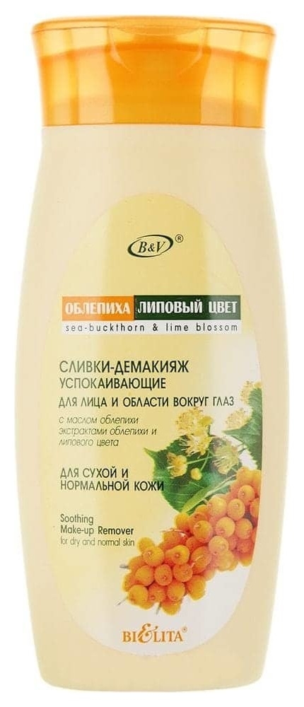 Сливки-демакияж для лица и области вокруг глаз с экстрактом облепихи и липового цвета успокаивающие Soothing Make-up Remover