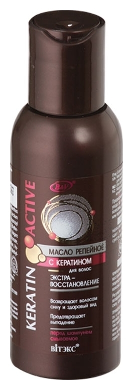 Масло репейное для волос с кератином Экстра-восстановление перед шампунем смываемое