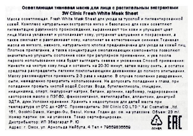 Тканевая маска из мягкого, нежного, натурального хлопка обеспечивает плотное прилегание к коже, благодаря чему более эффективно воздействует на нее, устраняет шелушения и покраснения, выравнивает тон, осветляет и тонизирует, придает ей свежий и здоровый вид. Ниацинамид благотворно влияет на сухую и зрелую кожу, осветляет пигментацию различного происхождения, преобразуя темный пигмент меланина в бесцветный, препятствует появлению новых пятен, устраняет заломы и морщины, повышает плотность кожи, оказывает активное антиоксидантное и регенерирующее действие. Также в составе: гиалуроновая кислота, бетаин, аргинин и аллантоин.