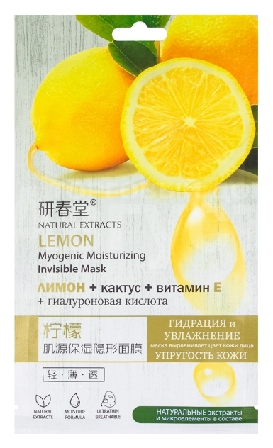 Тканевая маска для лица с экстрактом лимона, очень богата витаминами группы С и В. Обладает омолаживающими свойствами, подтягивает и укрепляет кожу, стимулирует выработку собственного коллагена и эластина, разглаживает мелкие морщинки, препятствует их образованию. Делает кожу мягкой и упругой.