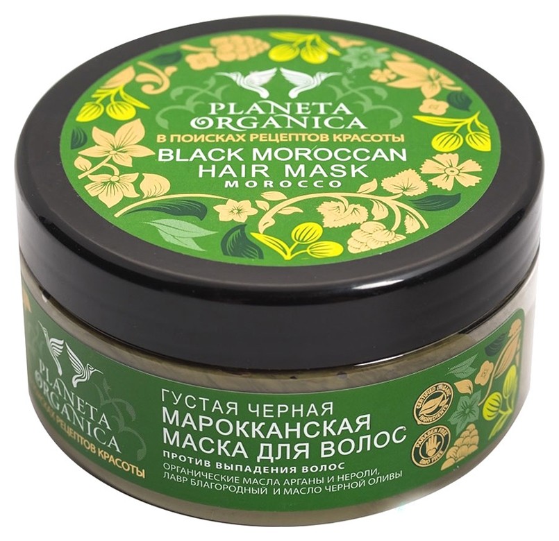 Черная марокканская маска для волос создана на основе ценного органического масла арганы – одного из самых редких и дорогих масел в мире. Масло содержит высокий процент витаминов Е и F, интенсивно питает и ухаживает за ослабленными волосами. Нероли возвращает эластичность и дарит изысканный неповторимый аромат. Масло благородного лавра - природная защита от воздействия агрессивной экологии и источник витаминов для кожи головы и волос, укрепляет корни и препятствует выпадению волос. Черная олива содержит 16 основных аминокислот, которые жизненно необходимы волосам и коже. Масло оливы питает волосы, мгновенно увлажняет и придает волосам мягкость.