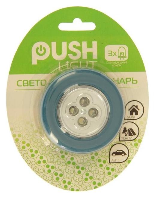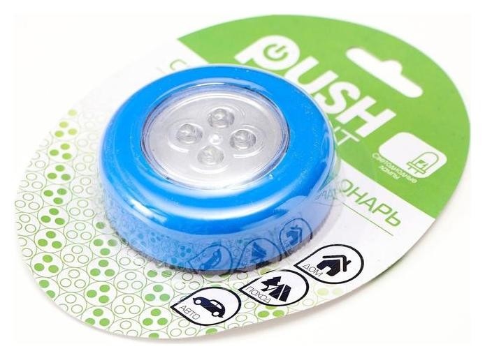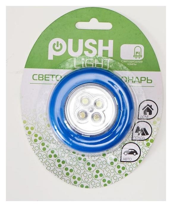 Светильник-пушлайт "Круг", 4 диода, синий — одна из важных деталей освещения детской или спальной комнаты. Этот небольшой предмет удивит вас своим дизайном и порадует мягким рассеянным светом. Он пригодится в семье, где есть маленькие дети: приглушённый свет не позволит испугаться ребёнку, если он проснулся ночью.