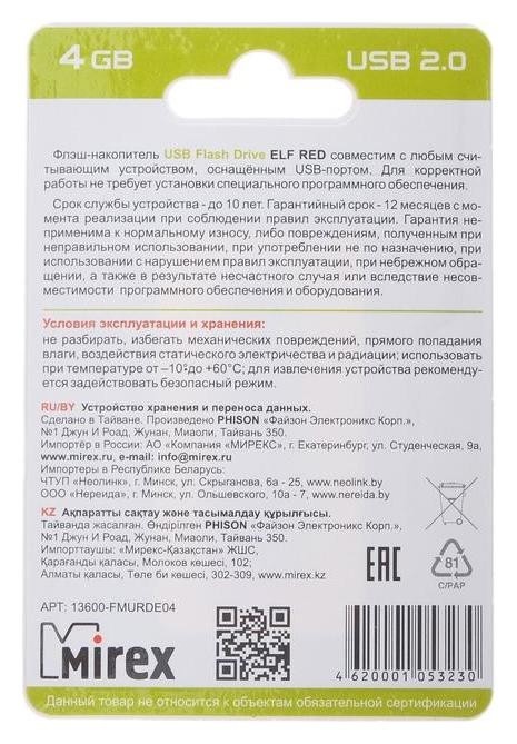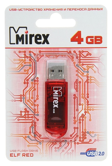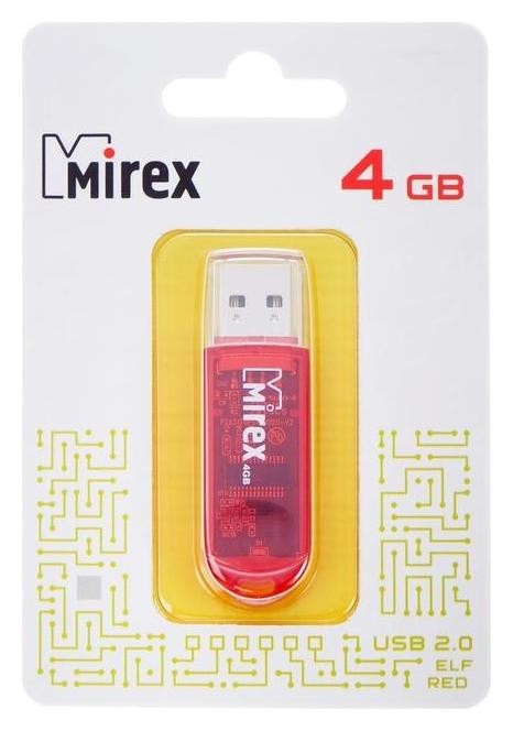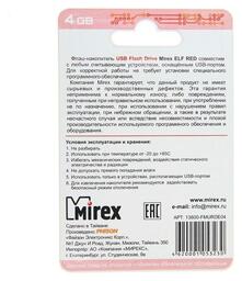 Флешка Mirex ELF Red, 4 Гб, Usb2.0, чт до 25 мб/с, зап до 15 мб/с, красная