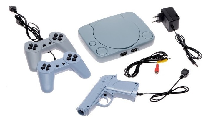 Игровая приставка Luazon, 8 бит, в комплекте 2 джойстика и пистолет, 999999 игр, серая