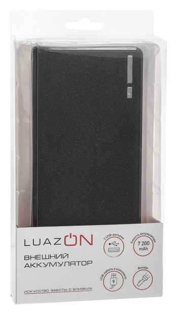 Внешний аккумулятор Luazon Pb-01, 7200 мач, 2 Usb, 1/2.1 А, фонарик, чёрный