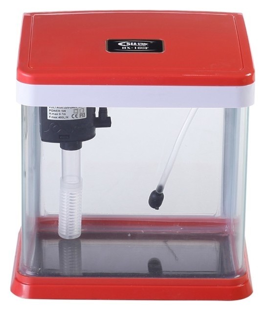 Аквариум Seastar Hx-180f (В комплекте Led-лампа, топ-фильтр), общий объём 7 л, полезный объём 3,5 л, красный с белым 3953842