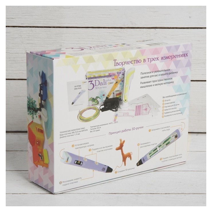 Может быть, именно такой необычный товар, как 3D ручка 3Dali Plus, ABS и PLA, KIT FB0021Pk, розовая (+ трафарет и пластик), раскроет неожиданные способности у вашего ребёнка. И даже если он не станет новым Рафаэлем, то ему, определённо, обеспечена богатая фантазия, креативное мышление и золотые руки.