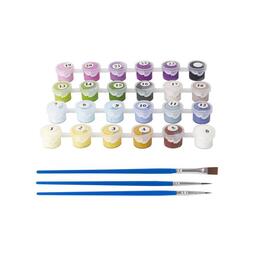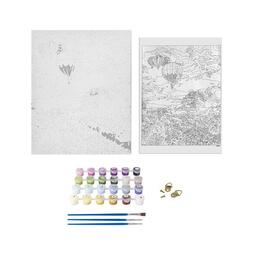 В набор входит: 1 хлопковый холст на подрамнике с контуром, 1 лист бумаги для тренировки, набор из 24 акриловых красок объемом 3 мл каждая, 3 синтетические кисти и комплект металлических креплений для подвешивания на стену. Краски укрывистые, быстро сохнут без потери цвета. Каждый цвет в наборе подходит под конкретный номер, благодаря чему нет необходимости смешивать краски. Однако, если Вы хотите добиться нового оттенка, наши краски с легкостью позволят это сделать благодаря отличной смешиваемости. 3 синтетические кисти разного размера идеально подойдут для закрашивания элементов различной сложности. Холст из 100% хлопка плотностью 290 г\м2 с высококачественной печатью и отличным натяжением. При работе с картиной дополнительно могут понадобиться: емкость с водой для мытья кисти и салфетка для удаления воды с кисти (В КОМПЛЕКТ НЕ ВХОДЯТ). Подходит для потребителей всех возрастов от 8 до 80 лет. Поставляется в картонной упаковке с ручкой.
