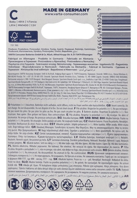 Батарейка алкалиновая Varta High Energy C набор 2 шт