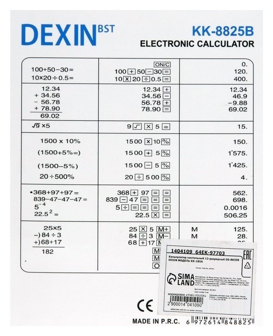 Калькулятор настольный "Dexin" 12 - разрядный КК - 8825в
